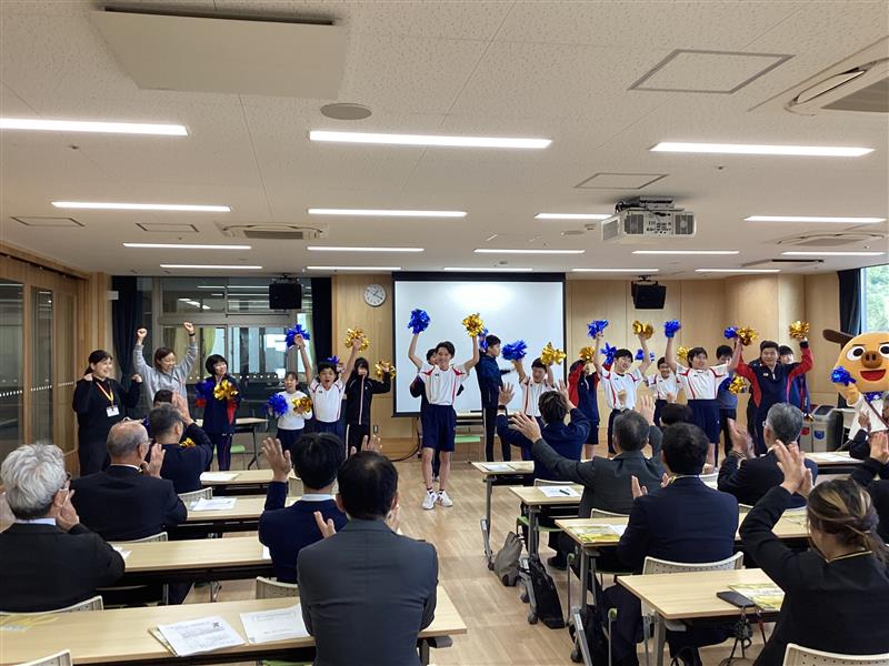中学部の様子昨日、丹後地方教育委員連合会の皆様が本校を視察されました。中学部2年生が、校歌斉唱とチアダンスで元気いっぱいに歓迎の気持ちを表しました。練習を重ねてきた成果を発揮し、笑顔と一体感のある発表となりました。会場では、温かい拍手をいただき来校者の方々に温かい雰囲気を感じていただけたようです。生徒たちにとっても貴重な交流の機会となりました。