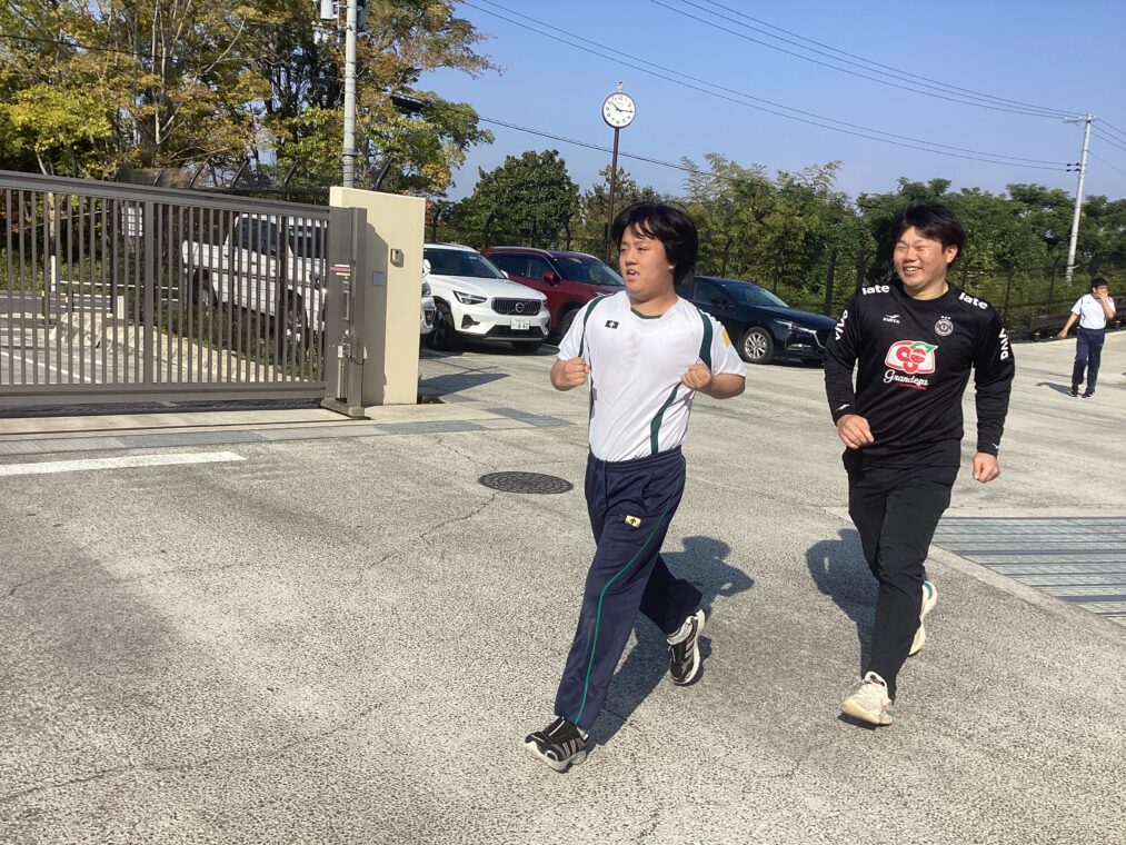 秋晴れの澄んだ空の下、朝の冷たい空気が顔を引き締める中、生徒一人ひとりが自分の目標週数を胸に、それぞれのペースでコースを走りました。途中、歩く姿もありましたが、それもまた最後まで走り続けようとする気持ちの表れ。本番は、学校公開日となっていますので、がんばる生徒たちにあたたかい声援をお願いします。