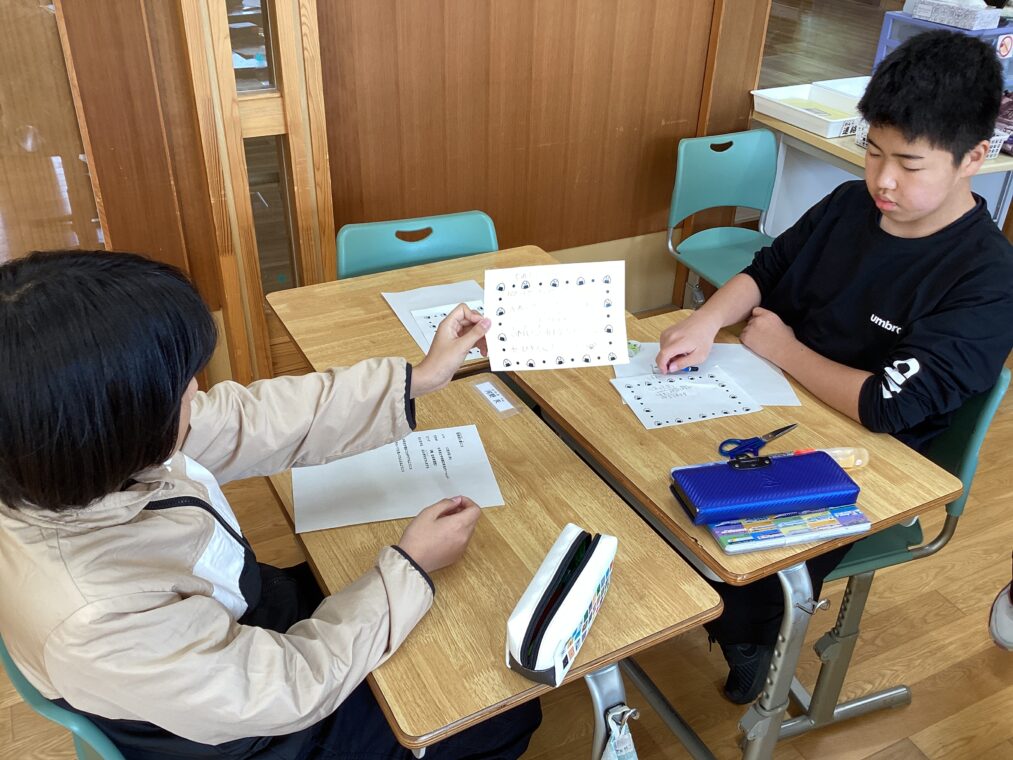 11月7日から始まった、小学部6年生と中学部2年生との「学部混合むすびスタディ」。合同での授業のほかに、6年生だけの学習でも準備を進めています。今日は、「おむすびカフェ」のお店の飾りとして、和飾りやおむすびのイラストを作ったり、おむすびカフェへの招待状を書いたりしました。明日は、校内の先生が参観に来て見てもらいます。徐々に形になっていく「おむすびカフェ」。当日が楽しみです。