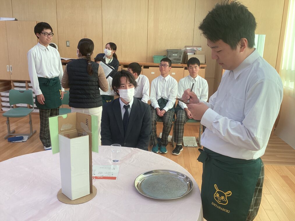 高等部の様子12/4(木)京しごと検定(接客部門)に向けて、受検する生徒たちは練習を重ねています。