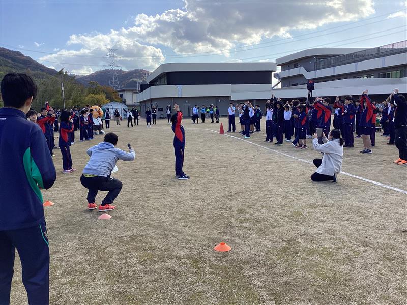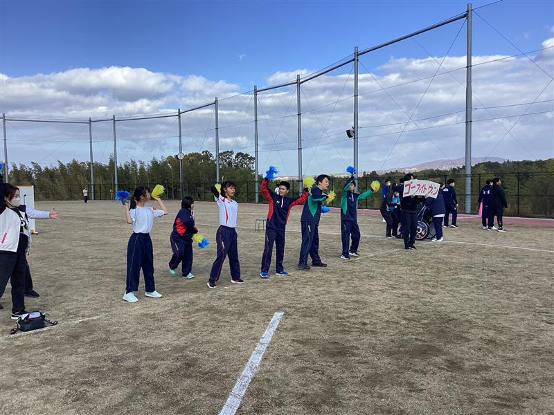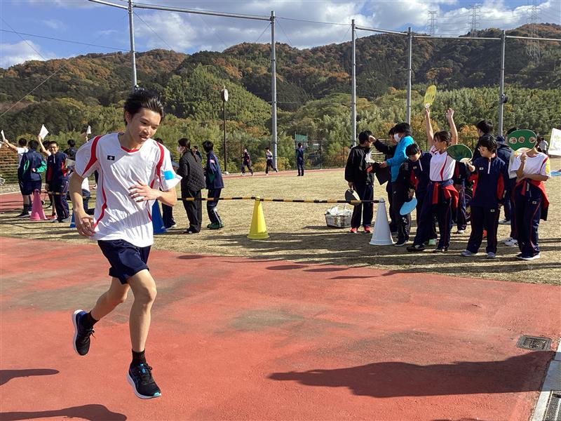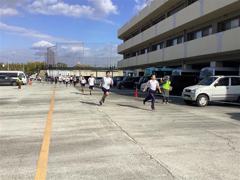 本日の学校公開「RUNRUNRUN」では、聖火ランナーの入場から始まり、会場は大きな拍手と声援に包まれました。生徒たちは走りながら仲間や観客から声援を受けたり、自らも励ましの声を送ったりと、温かな交流が広がりました。招待チームとして木津高校の生徒も参加し、共に汗を流しながら目標の周回達成を目指しました。澄んだ青空の下、実行委員による挨拶と司会進行も堂々と行われ、行事全体を盛り上げてくれました。スポーツを通じて絆を深め、笑顔あふれる一日となりました。保護者の皆様、御参観、YS活動、ランナーの御参加ありがとうございました。