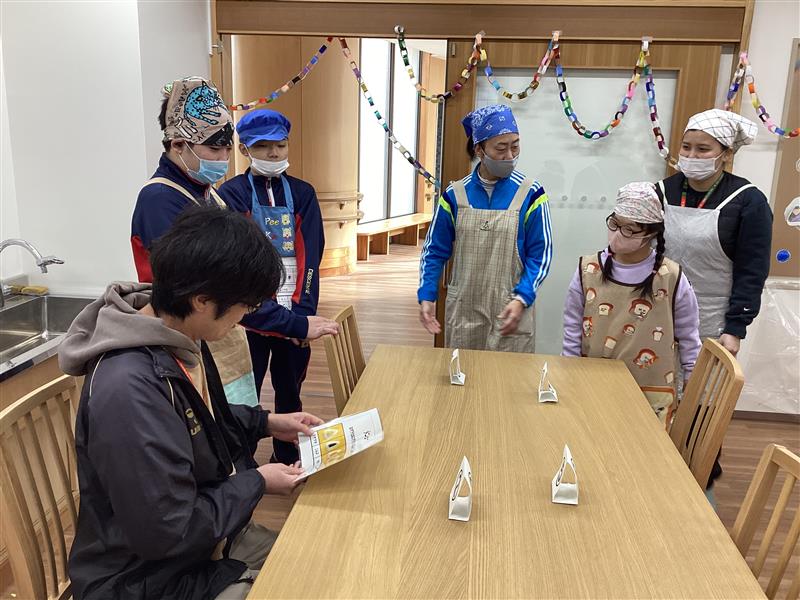 中学部の様子本日の混合むすびスタディでは、生徒たちが心を込めておにぎりを握り、笑顔でお客様をお迎えしました。「いらっしゃいませ!」の元気な声でお迎えし、席へ案内して注文を取ります。出来上がったおにぎりを運びながら「ごゆっくりどうぞ」と声を掛ける姿は、おもてなしもばっちりで素敵でした。