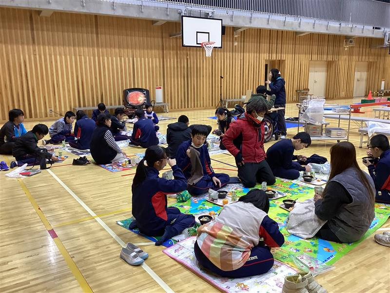 中学部の様子本日の総合防災学習では、避難訓練や防災給食の体験、あそぼうさい、応急処置など、さまざまな活動を通して防災への意識を高めました。安全な避難経路や避難場所を確認し、緊急時に冷静に判断できる力を養いました。応急処置の方法を学び、けがや体調不良などの緊急事態にも対応できる力を身につけました。また、非常食をいつもと違う場所で食べる体験を通して、災害時の食事に慣れることもできました。