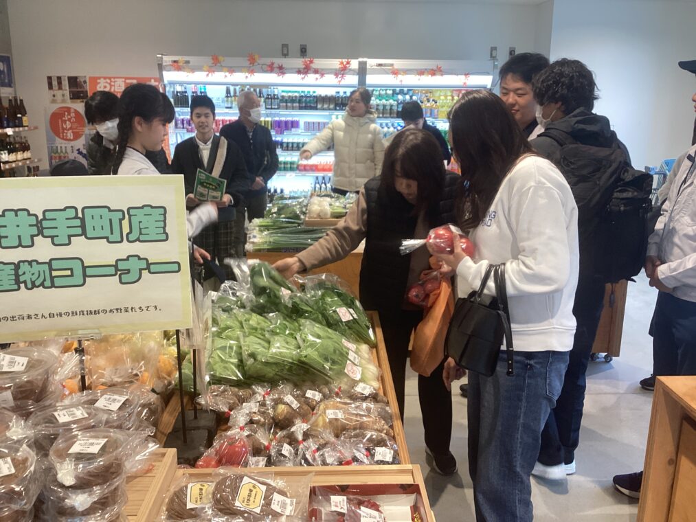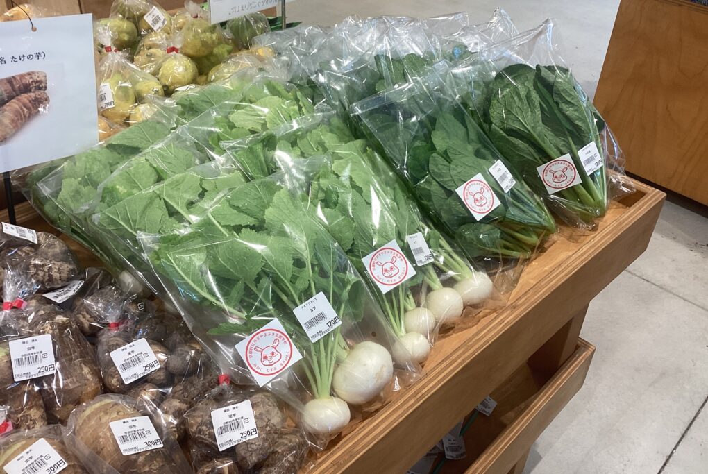 納品した野菜(小かぶ、小松菜)に値札を付けて並べた後は、売り場で30分ほど呼び込みを行いました。何人もの保護者の方々が足を運んでくださり、納品した野菜は あっという間に完売しました。