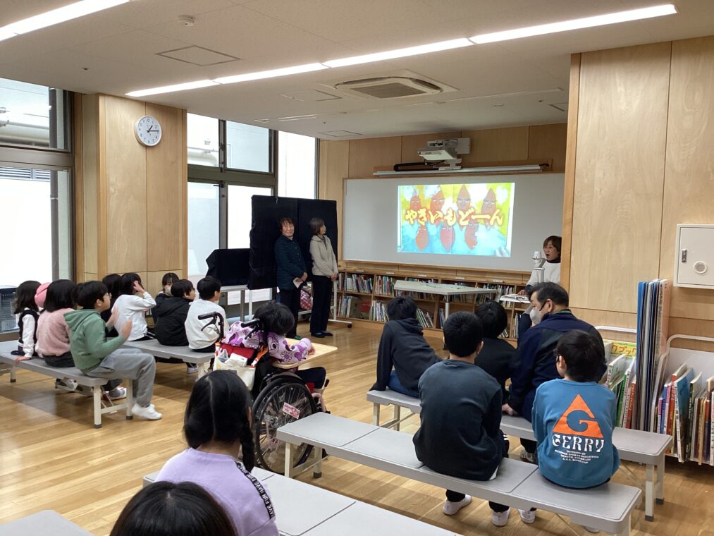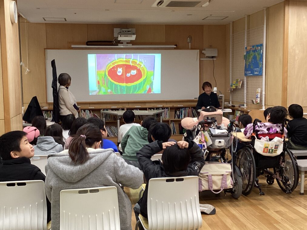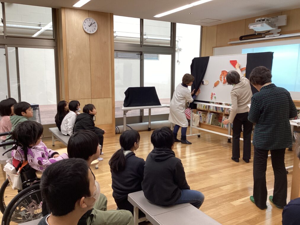小学部の様子先週、小学部対象のこまちサロンがありました。今回は、「朗読の会 萌え」のみなさんが来てくださいました。普通の絵本の読み聞かせではなく、パネルシアターにして絵を貼り付けたり動かしたりしているのを見ながら、お話の朗読を聞きました。目でも楽しみ、耳でも楽しむことができました。スクリーンもお話ごとに変わっていき、いろいろな朗読に、集中して聞き入る姿が素敵でした。