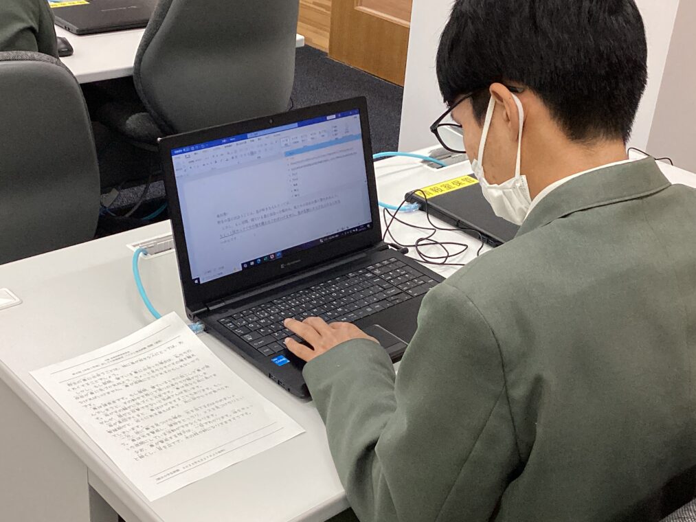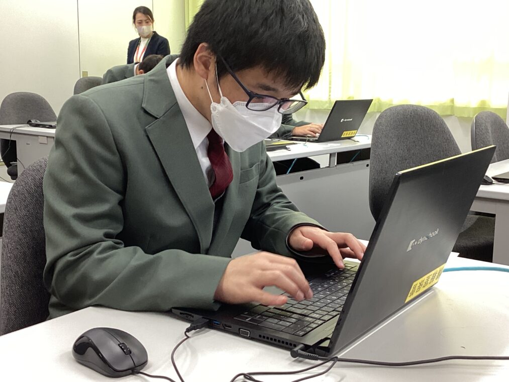 受験する生徒は、情報の授業で練習してきたタイピング力(時間内に何文字打てるか)を試しました。
