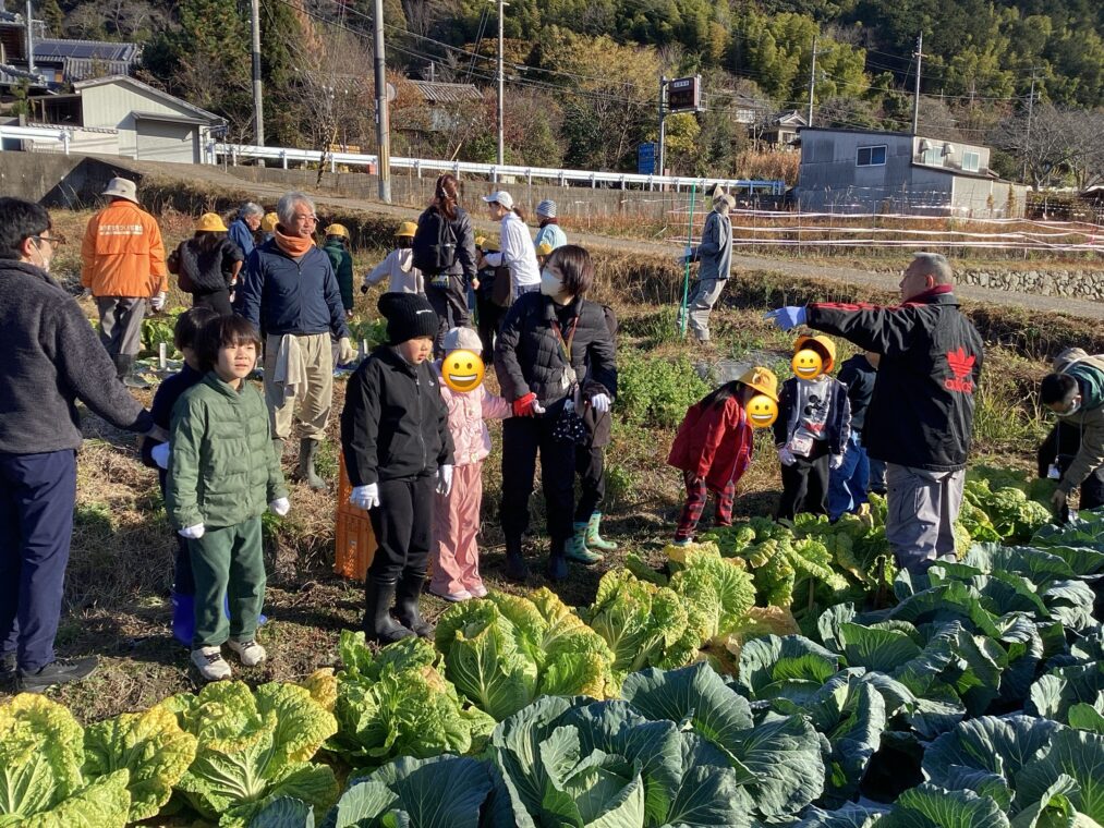 16日、低学年の5・6組児童が、井手町まちづくりセンター椿坂で、冬野菜の収穫体験をしました。種まきのときは、学校行事と重なり参加できませんでしたが、多賀小学校の児童が、井手やまぶき支援学校の児童の分も一緒にまいてくれていました。大きな白菜の収穫はカマを使うため、椿坂の方にお世話になりました。顔よりも大きな白菜を持たせてもらい、大満足な表情でした。白菜収穫の後は、キャベツの収穫も行いました。多賀小学校の児童とペアになり、力を合わせて大きなキャベツを収穫することができました。