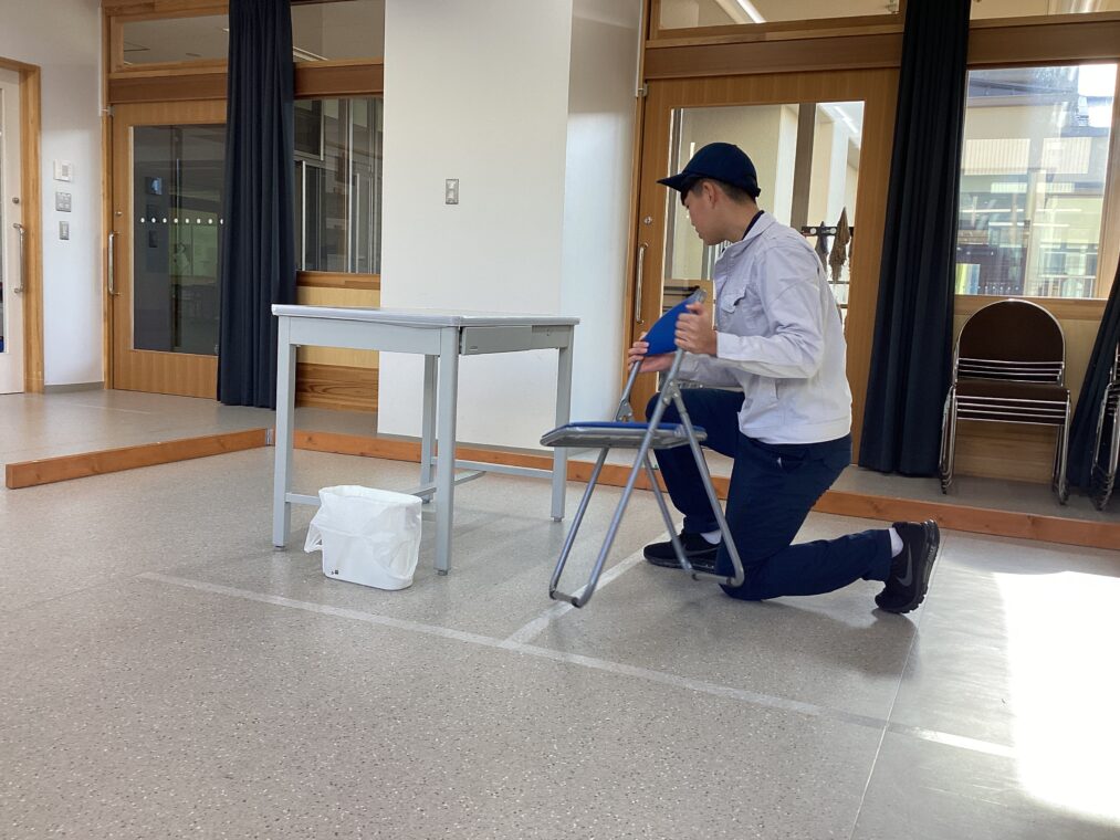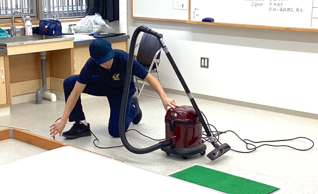 この大会では、京しごと技能検定にはない課題(掃除機と湿式モップ)が加わるため、難易度がぐっと上がります。また、各校の高等部生だけでなく、既に卒業して清掃業で働いている人たちとも競うことになります。