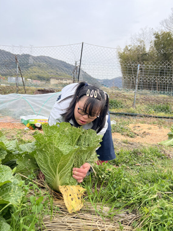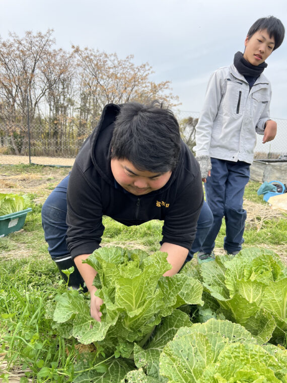 結果は上々。ずっしりと重く、葉が何層にも重なった立派な白菜が収穫できました。残念ながら、今回は販売することはありませんが、手応えは十分。来年度は、生徒たちが栽培し、販売製品となるかもしれません。(未定)
