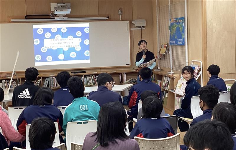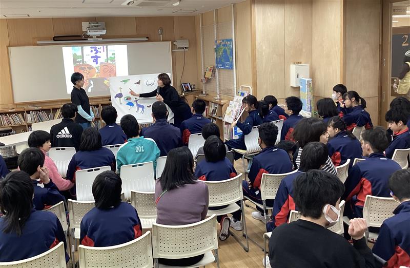 本日、中学部では「こまちサロン」を開催しました。今回は、「おはなしたまご」さんに来校していただき、あたたかな雰囲気の中で楽しい時間を過ごしました。はじめに、言葉のやり取りを楽しみながらしりとりを行い、生徒たちは積極的に参加する姿を見せていました。しりとりの最後は、今年の干支である「馬」で午年に関する話をしていただきました。そのあと日本伝統芸能である狂言の演目「附子」を楽しくアレンジした絵本の読み聞かせがあり、物語の世界に引き込まれるように聞き入る様子が印象的でした。人と関わり、言葉や物語を楽しむ大切さを感じるひとときとなりました。