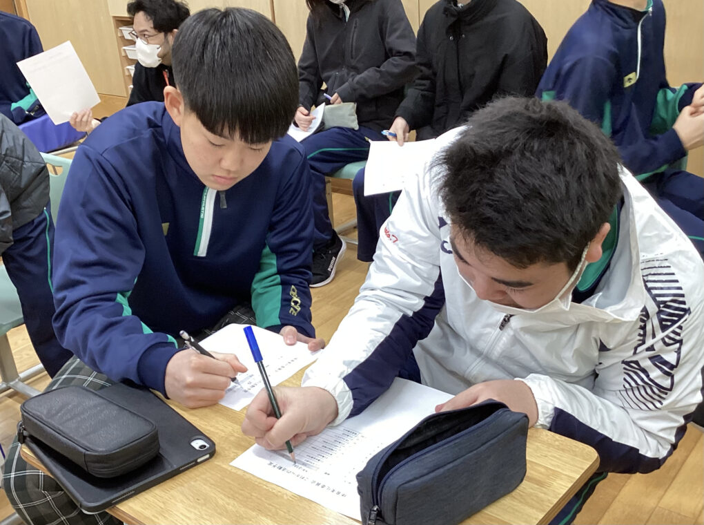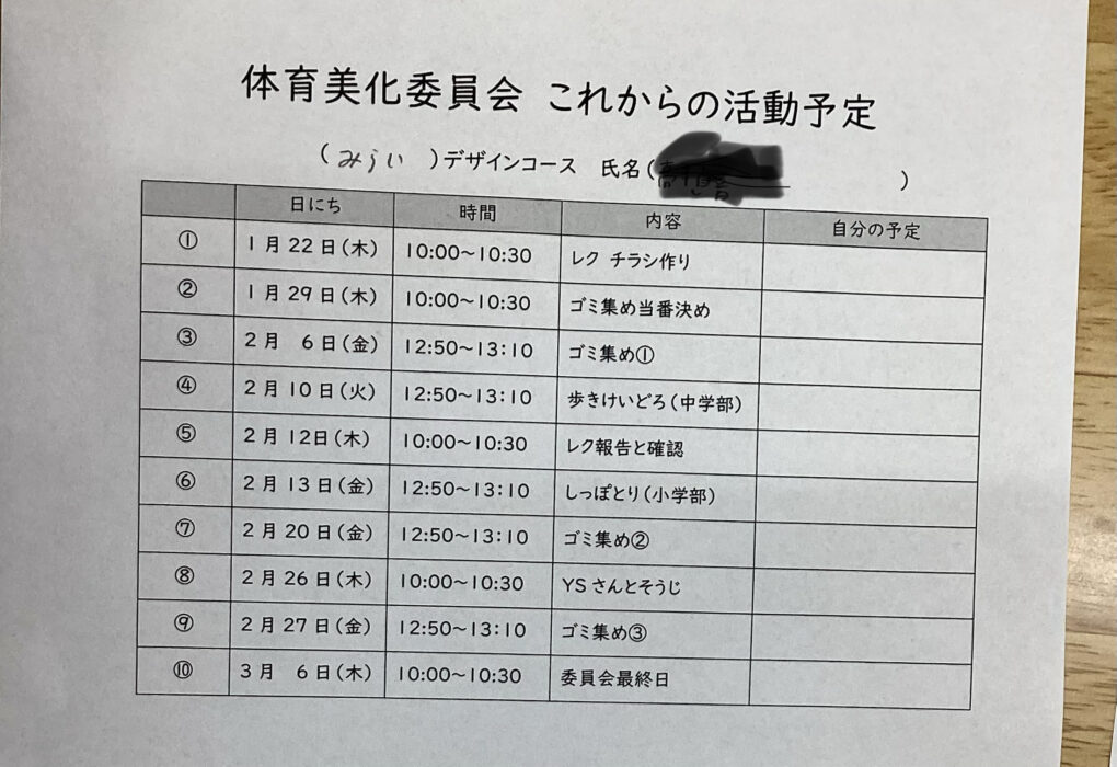 体育美化委員会では、2学期に学部集会のレクリエーションを企画し、盛り上げることができました。3学期は 小・中学部の子たち向けに、昼休みにできるレクリエーションを企画します。今日は、お知らせのチラシ作成しました。「どう書いたらわかりやすいかな」「キャラクターを入れたら喜ぶかも」生徒たちの言葉には、小・中学部の子たちへの思いやりが溢れていました。