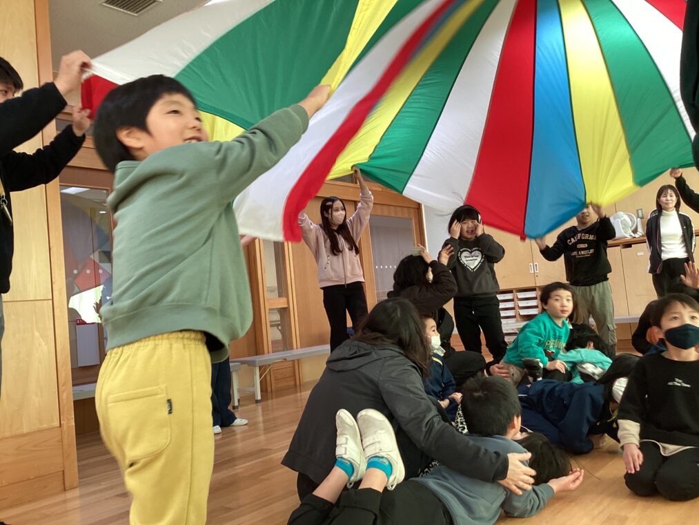 2学期からの取組の学部合同あそびがありました。何回も一緒に活動することで少しずつお互いのことを知り、スムーズに活動ができるようになってきています。校内ウォークラリーをしたグループは、チェックポイントできちんと挨拶をしてお年玉を集めます。ペアで交代しながらもらったお年玉を貼り付けていました。ボール運びをしているグループでは、お互い歩調を合わせてボールを運びます。最後のパラバルーンでは、持つ役をしてくれる人と中に入る人に分かれて楽しみました。クラスを超えての交流も大切な時間です。