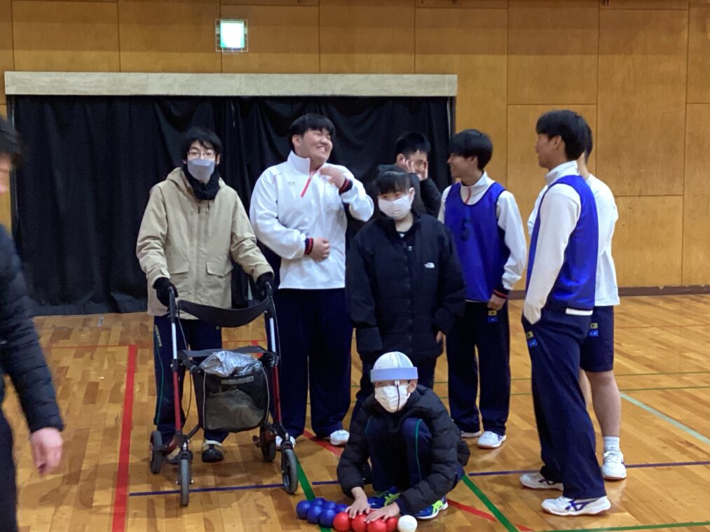 くらしデザインコースと生徒会本部の生徒が、田辺高校でボッチャを通じた交流を行いました。