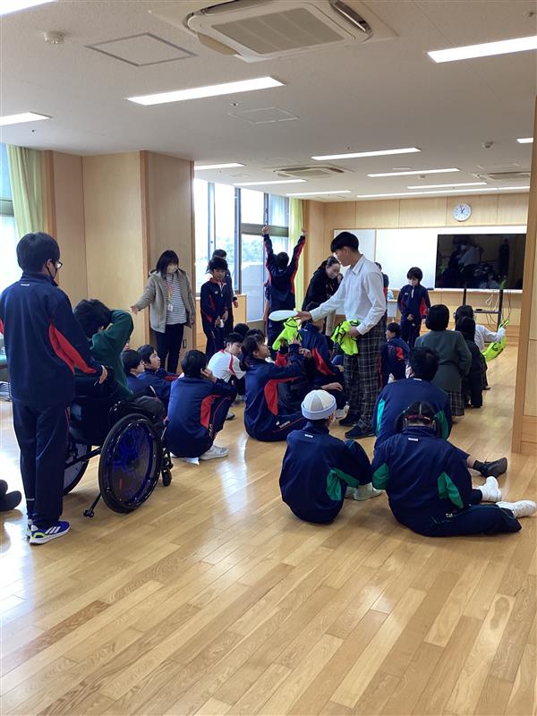 今日の昼休みは、高等部が提案してくれた「歩き鬼ごっこ」を楽しみました。逃げる人は2人で手をつなぎ、走らずに3階の廊下をゆっくり移動します。声をかけ合いながら逃げて、ドキドキしながら逃げている姿がとても印象的でした。みんな笑顔で、高等部との交流を楽しんだ時間を過ごすことができました。
