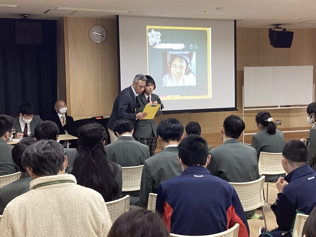 高等部の様子今日は、卒業生を祝うための学部集会を行いました。