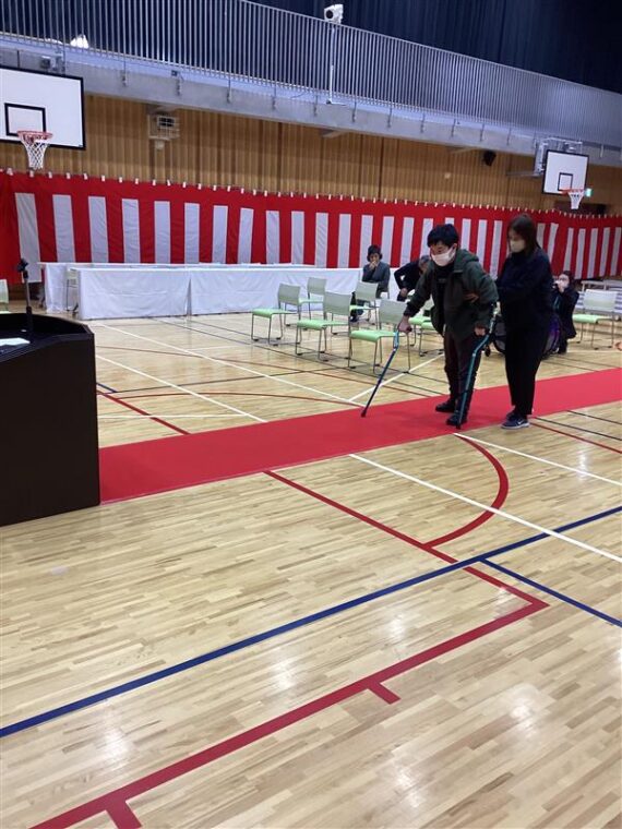 卒業式に向けた表彰練習の様子をお伝えします。生徒たちは、名前を呼ばれたときの返事の仕方や、賞状の受け取り方、姿勢など、動きを丁寧に確認しながら取り組んでいます。この写真は昼休みの個別の練習の様子です。緊張した表情でみんな頑張っています。卒業の日に胸を張ってステージに立てるよう、気持ちを込めて練習を続けています。