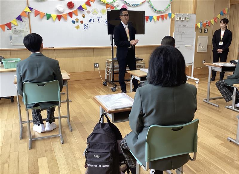 やや緊張した面持ちながらも、担任の先生の話に真剣に耳を傾ける姿が大変印象的でした。