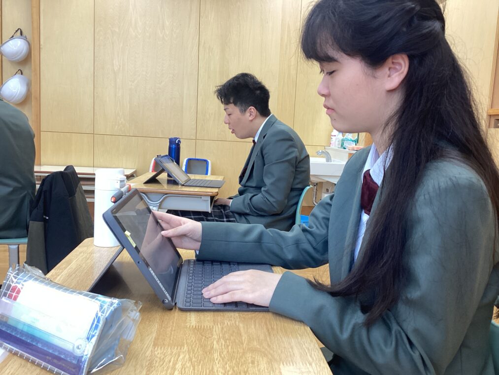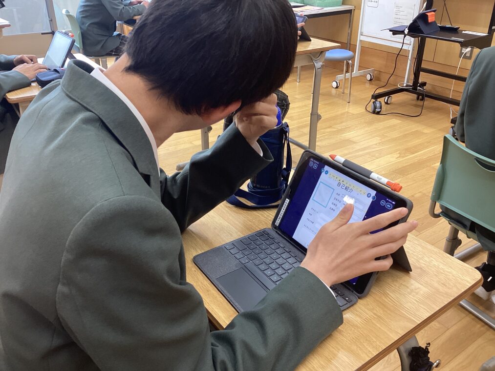 タブレットとロイロノートを使いこなす様子から、三年間の学びの確かな積み重ねが見えてきます。