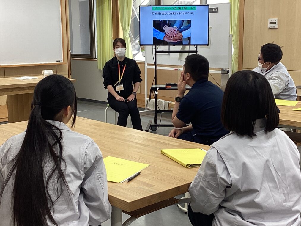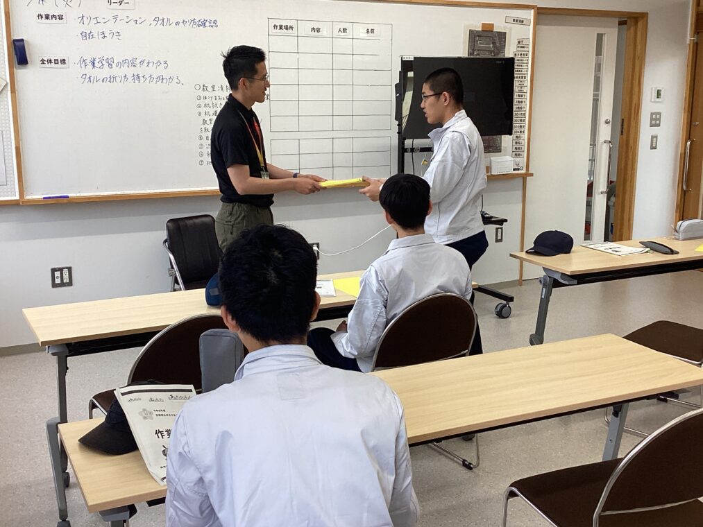 初めての作業学習に、オリエンテーションでの説明を真剣に聞き入る姿が印象的でした。