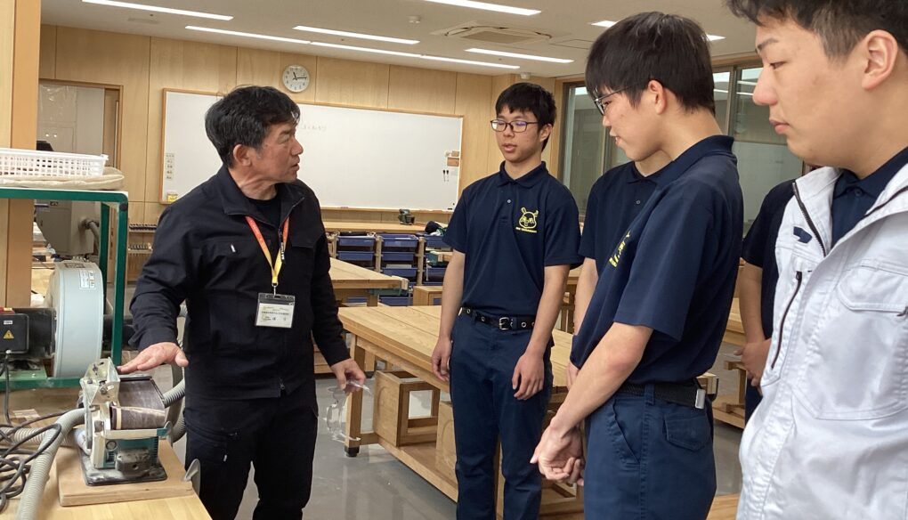 木工室を訪れると、作業で使用する工作機械の取り扱いについて、教員が説明をしているところでした。