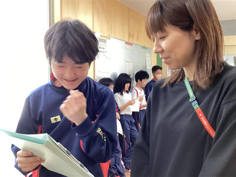 中学部の様子2年生の道徳科の時間で、1学期の目標をそれぞれが考え、職員室に「宣言」しに来てくれました。頑張りたい教科や、友達との関わりを大切にしたいという気持ち、片づけをするという生活面の目標など、一人一人が自分自身を「みがき」、友達や先生と「むすび」、これからの学校生活を前向きに「きりひらこう」とする姿が見られました。仲間の発表に耳を傾け、終了後は拍手等をして応援する温かい雰囲気も生まれていました。