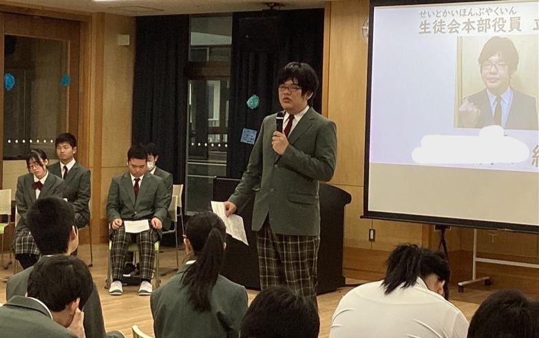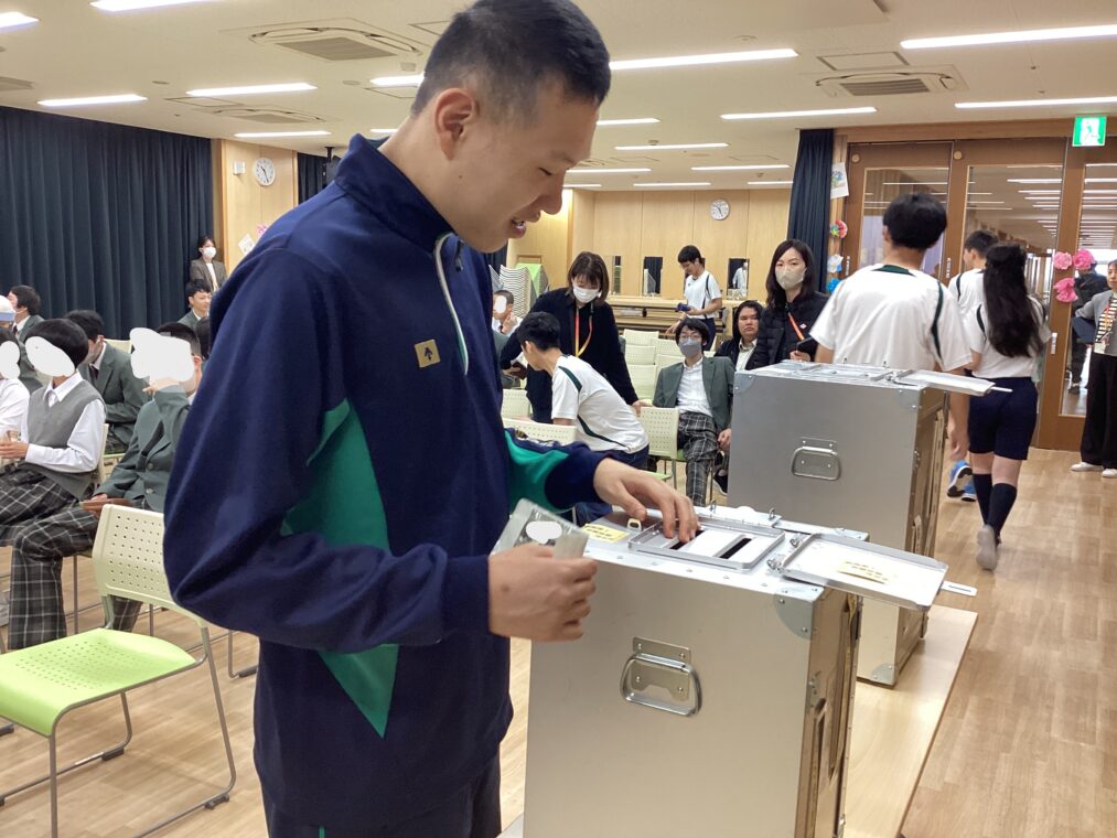 生徒会役員選挙の立候補者演説と投票を行いました。