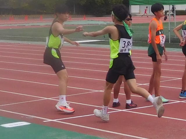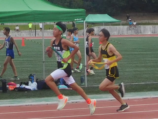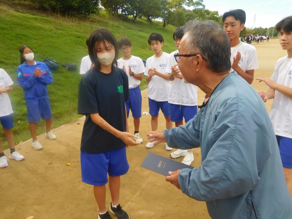 10月11日(土)、山城総合運動公園太陽が丘陸上競技場周辺コースで令和7年度山城地方中学校体育大会駅伝競走の部が開催されました。本校からも陸上競技部員を中心にバスケットボール部、外部のバレーボールや公式野球、サッカーチームからのメンバーも加わり、女子は5区間12.3kmを、男子は6区間18.5kmをみんなでタスキをつなぎ、完走しました。結果は、男子が21位(47校参加)、女子が19位(36校参加)で、どちらも昨年より順位を上げました。それぞれが練習の成果を発揮し、最後の1分1秒まで粘り強く走ることができました。全力で挑戦し、みんなでタスキをつなぎあったこの貴重な経験をこれからの学校生活や競技生活、そして人生に活かしていって欲しいと思います。駅伝部員の皆さん、選手の皆さんお疲れ様でした。また、一人一人に応じて丁寧にわかりやすく指導してくださった南コーチ、支えていただいた保護者・ご家族の皆様ありがとうございました。