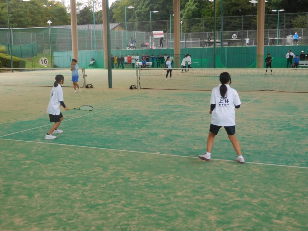 10月11日(土)と18(土)の2週にわたり山城総合運動公園太陽が丘テニスコートで開催された、令和7年度秋季中学校ソフトテニス山城大会及び秋季山城地区Ⅰ年生大会に本校から綴喜大会を勝ち抜いた女子1ペア(上林・福田ペア)、男子2ペア(守岡・谷口ペア、王野・宮﨑ペア)が参加しました。どのペアも粘り強くボールをつなぎ、サービスエースやボーレーを決めるなどして熱戦を繰り広げました。上林・福田ペアは2人で力を合わせてフルセットの激戦を勝利し、見事に1回戦を突破しました。また1年生大会に参加した男子の2ペア(守岡・谷口ペア、王野・宮﨑ペア)は、5ペアによる予選リーグ戦に出場し、2ペア共に3勝1敗の好成績を収めました。わずかの差で決勝トーナメントには出場できませんでしたが、今後の活躍が大いに期待できる結果となりました。男女3ペア共にこの貴重な経験をもとに今後の練習に励み、春の大会や夏の大会では実力をさらに伸ばして欲しいと思います。選手の皆さん、お疲れ様でした。