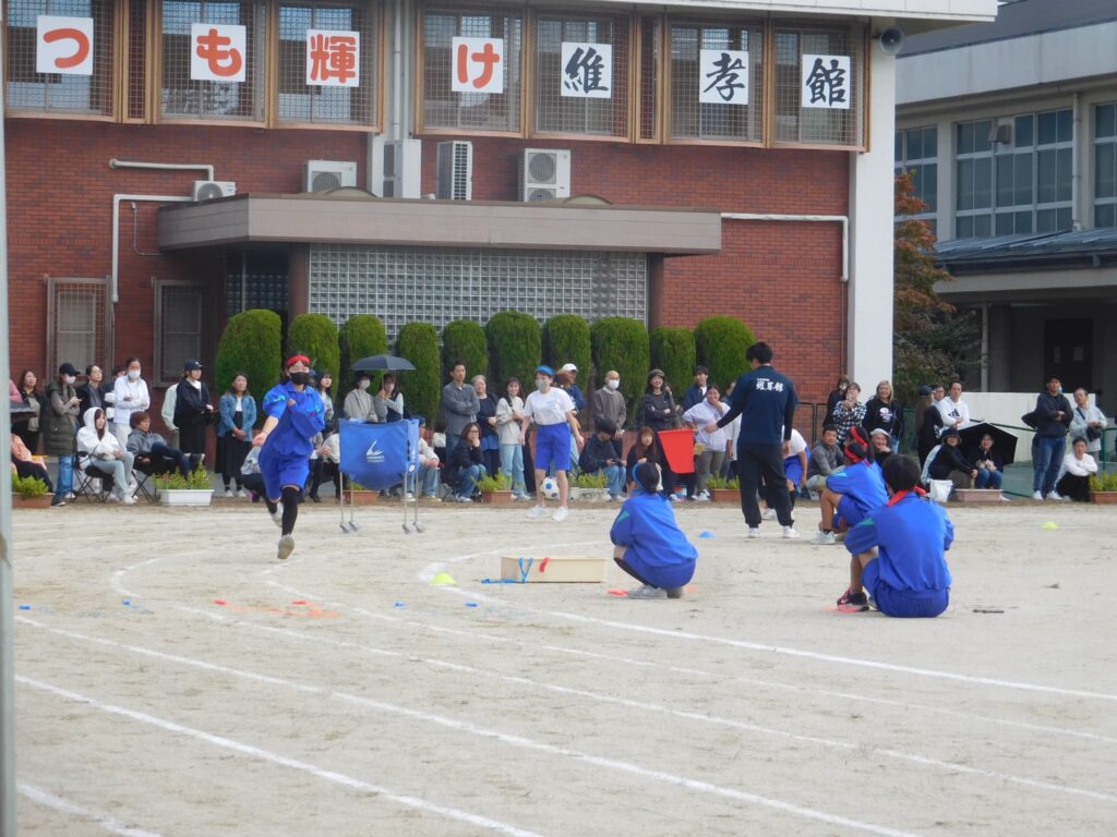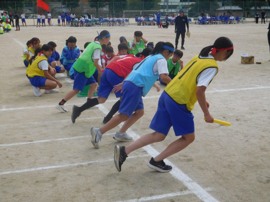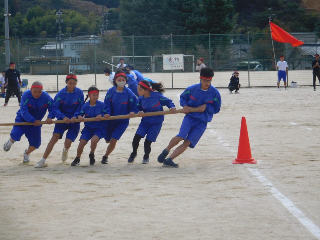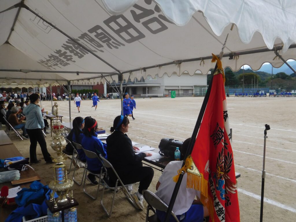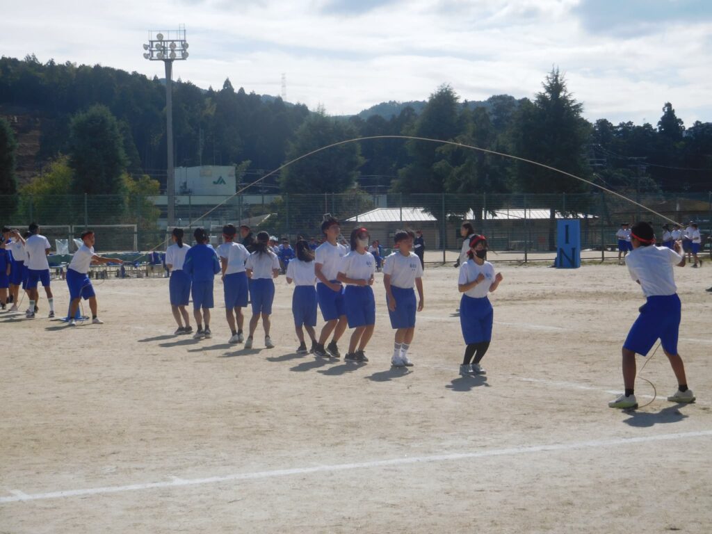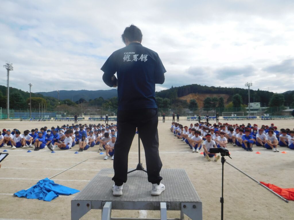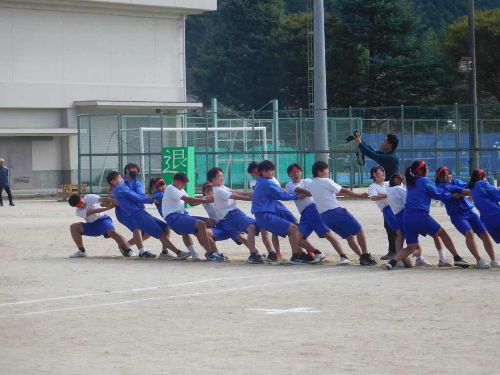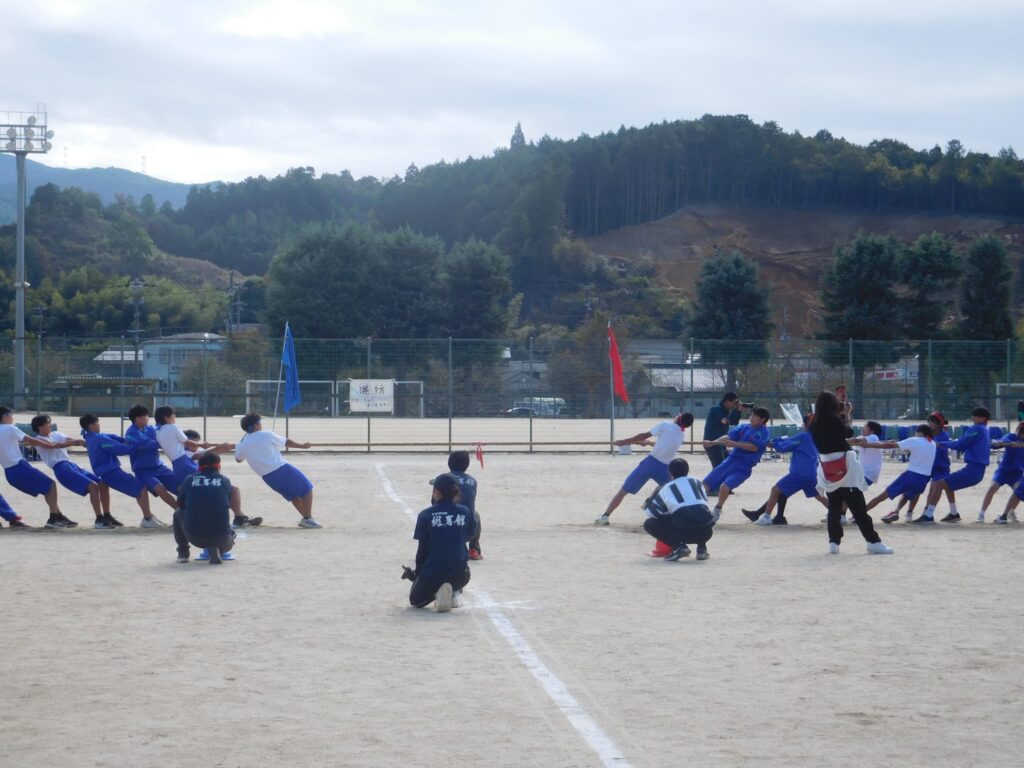先週の金曜日(10/24)にさわやかな秋風の下、第77回体育大会を実施しました。赤・青どちらのブロックも全力を尽くし、全校スローガンの「混紡 ~ブロックの色に染まれ!」のとおり一人一人がブロックのために全力を尽くし、一人一人の頑張りが織り混ざり素晴らしい体育大会を紡ぎ出すことができました。各学年が練習を重ねた学年種目、各ブロックで作戦を考えたりやり方を工夫したりしたブロック種目(ハリケーン・綱引き)、また、ブロッ演技では、どちらのブロックも、毎日、練習を積み重ねブラッシュアップした成果が発揮されました。みんなが笑顔で切れ味鋭いダンスを披露している姿を見て、とても感動しました。この日のために、夏休みから取り組みを進めた3年生のリーダーの皆さん、生徒会本部の皆さん、1・2年のリーダーの皆さん、グラウンドの準備や当日の運営についてしっかりと責任を果たした各係や委員会の皆さん、そして競技や応援に全力を尽くしたすべての生徒のみなさんの力で笑顔(スマイル)いっぱいの素晴らしい体育大会になったことをうれしく思いました。運営にご協力いただいたPTA本部役員・保健体育部員の皆様方、ありがとうございました。また、ご観覧いただいたご来賓の皆様、保護者の皆様、地域の皆様方の子どもたちへの温かいご声援、励ましの拍手に感謝の気持ちでいっぱいです。どうもありがとうございました。