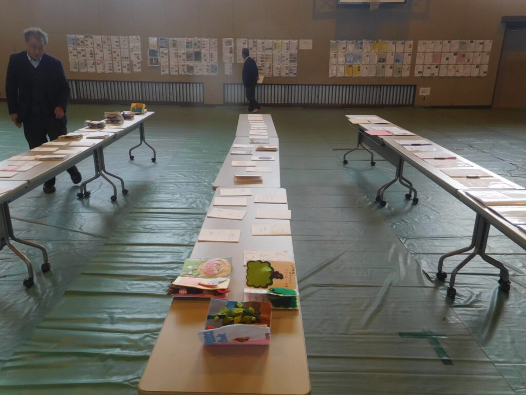 授業参観に加え、体育館では文化発表会展示の部として教科の授業での作品(国語、社会、英語、美術、家庭等)や夏休みの自由研究作品(数学、理科、技術)、山茶花学級生徒作品、美術部生徒作品を展示し、見学していただきました。ステージ上には美術部の皆さんが夏休みに力を合わせて制作した巨大絵画「幸せな贈り物」が貼り出され、私たちを出迎えてくれました。作品名のとおり目にしたみんなを幸せな気持ちにしてくれました。体育館での展示見学にも、多くの方々にお越しいただきありがとうございました。保護者・地域の皆様に文化発表会や体育大会等の行事に加え、普段の教科授業や作品等の成果物をみていただくことは、生徒にとっても教員にとっても皆様の支えや期待を肌で感じることができ、大変励みとなっています。本日は、まことにありがとうございました。次回の学校公開は令和8年1月17日(土)を予定しています。土曜日、全日公開となりますので、皆様のご来校、引き続きよろしくお願いいたします。