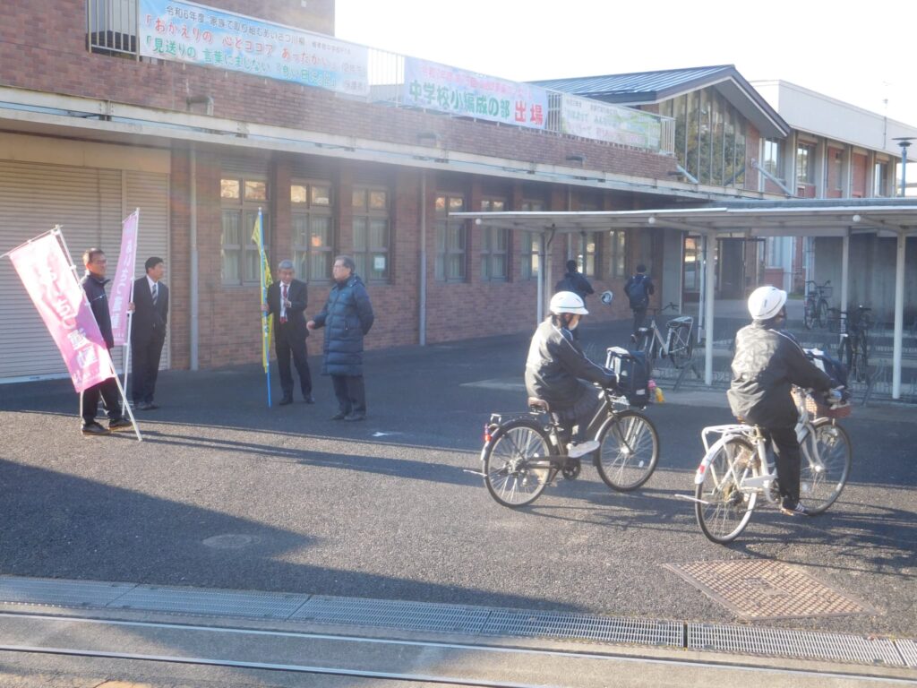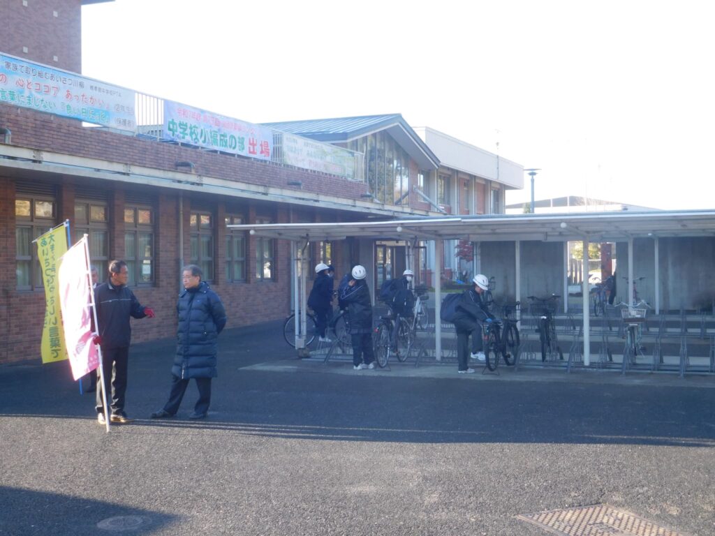 さて、本日の朝に本校東門で、町教育委員会・社会教育委員・PTA本部役員、各委員会の皆様合同のあいさつ運動を実施しました。朝夕、日に日に気温が下がり、肌寒い日が増え、体調管理が難しい時期となりました。そうした中で、生徒みんなの元気なあいさつを聞くと寒さも吹き飛びます。気持ちの良いあいさつで一日をスタートすることは、お互いのコミュニケーションを図ったり、「今日もがんばるぞ」という気持ちになったりするのにとても大切なことです。これからも気持ちの良いあいさつの輪がひろがるように引き続きこの取組を継続していきたいと思っています。次回のあいさつ運動は、12月4日(木)に予定しています。本日参加していただいた皆様、朝のお忙しい中、また、肌寒い中ありがとうございました。