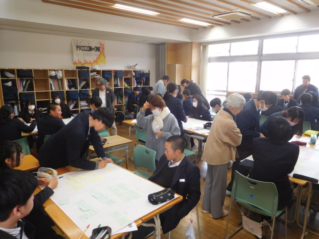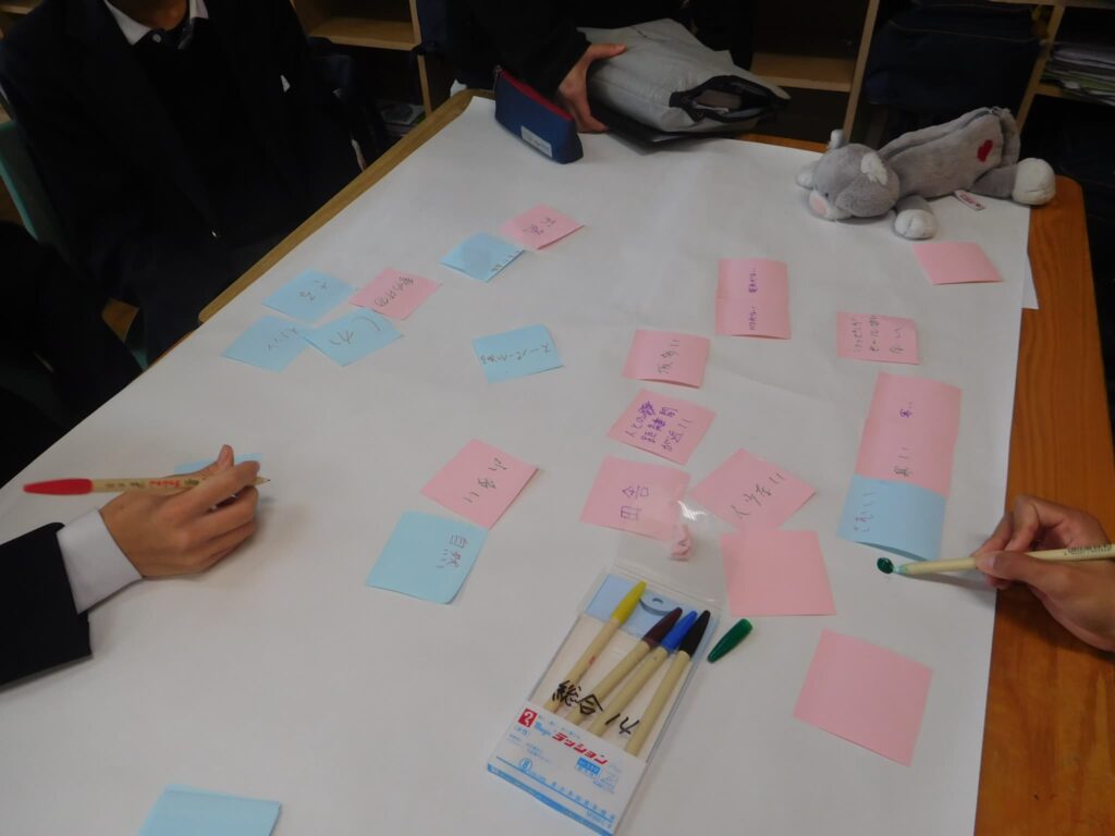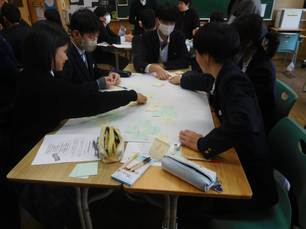 その後、各クラスに分かれて、「宇治田原を元気にする会社をつくろう!」というテーマで宇治田原のよいところ、課題と考えるところについて班ごとに一人一人の思いを出し合いました。今年度のテーマは「観光」です。「観光」の観点から、宇治田原町の魅力を活かし、課題を解決する素晴らしい事業アイディアが生み出されることを楽しみにしています。