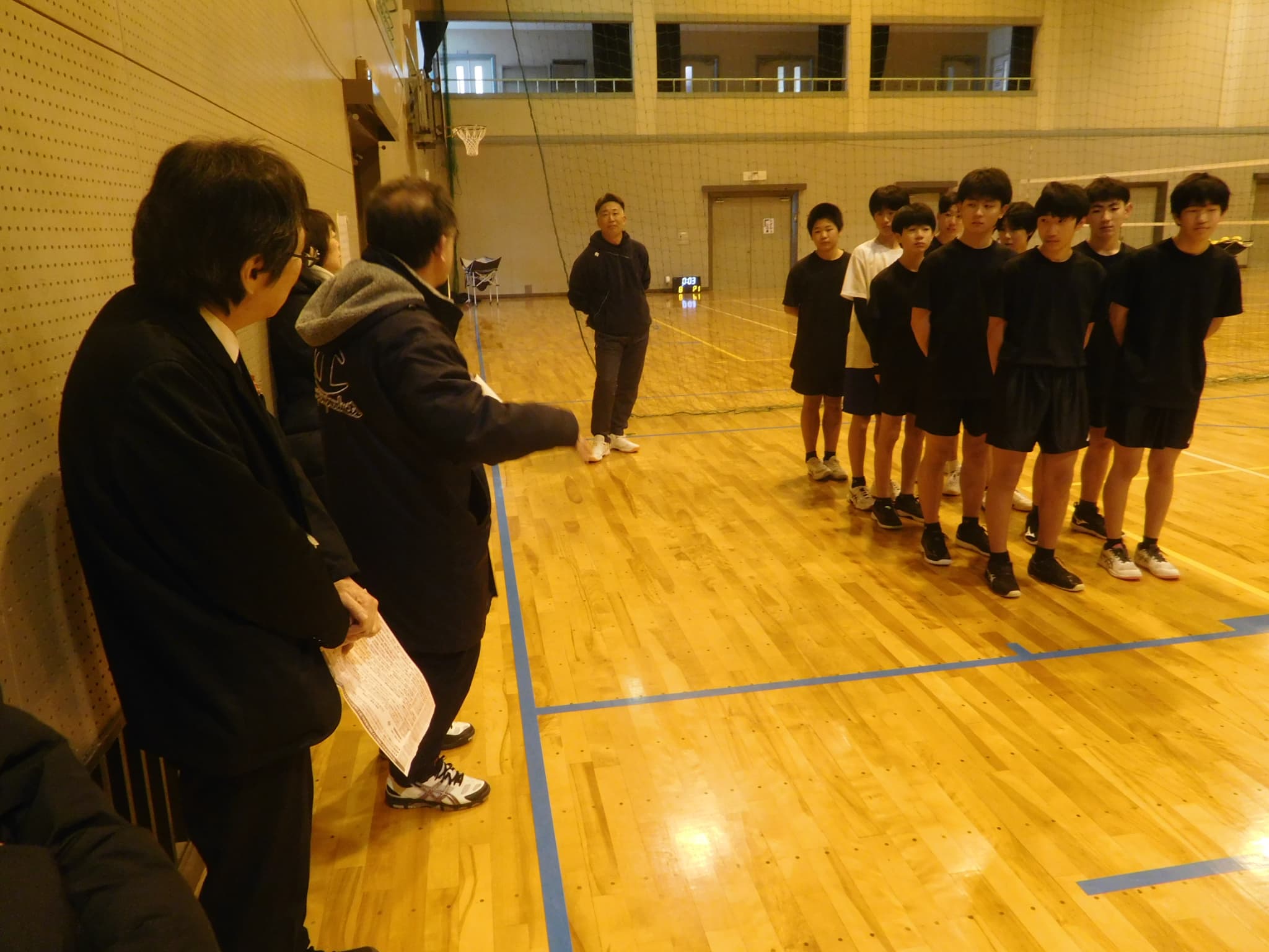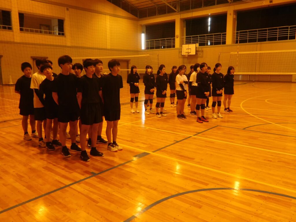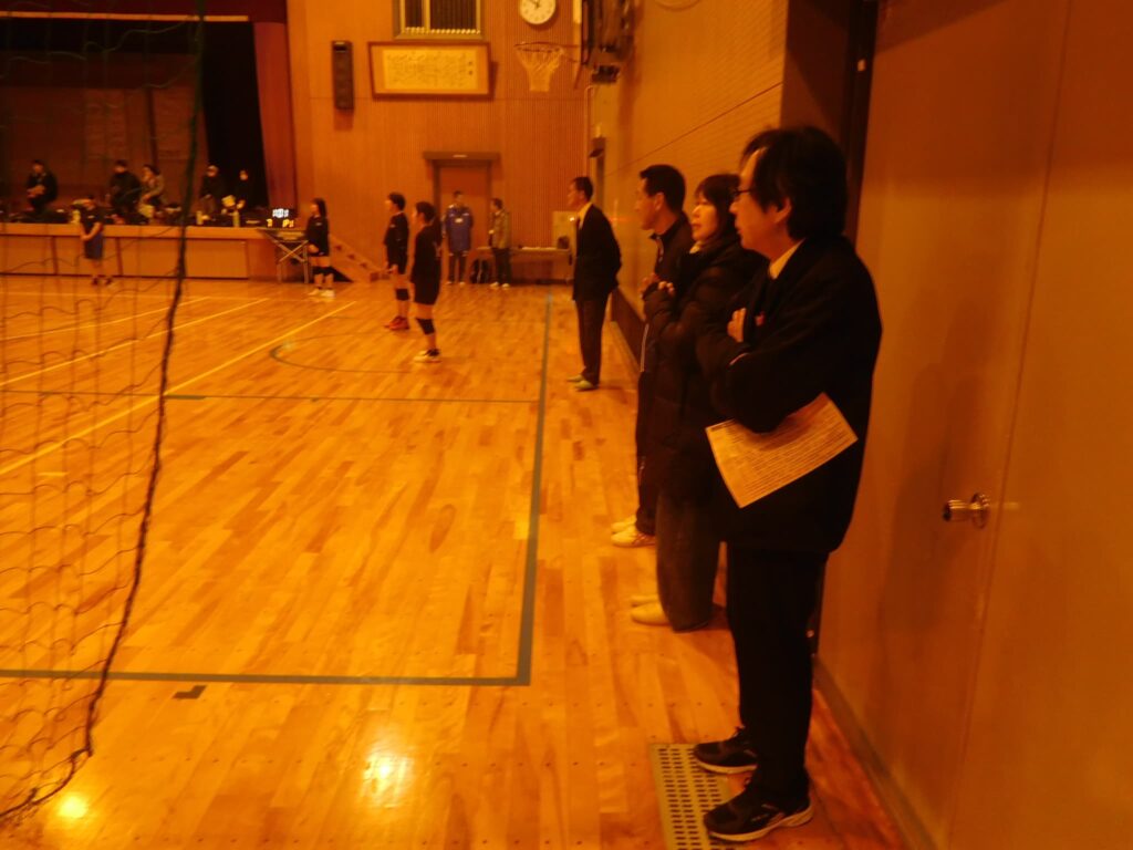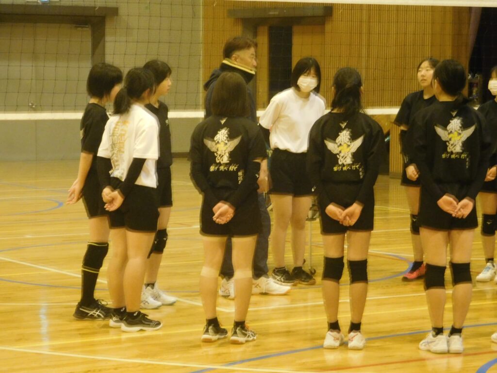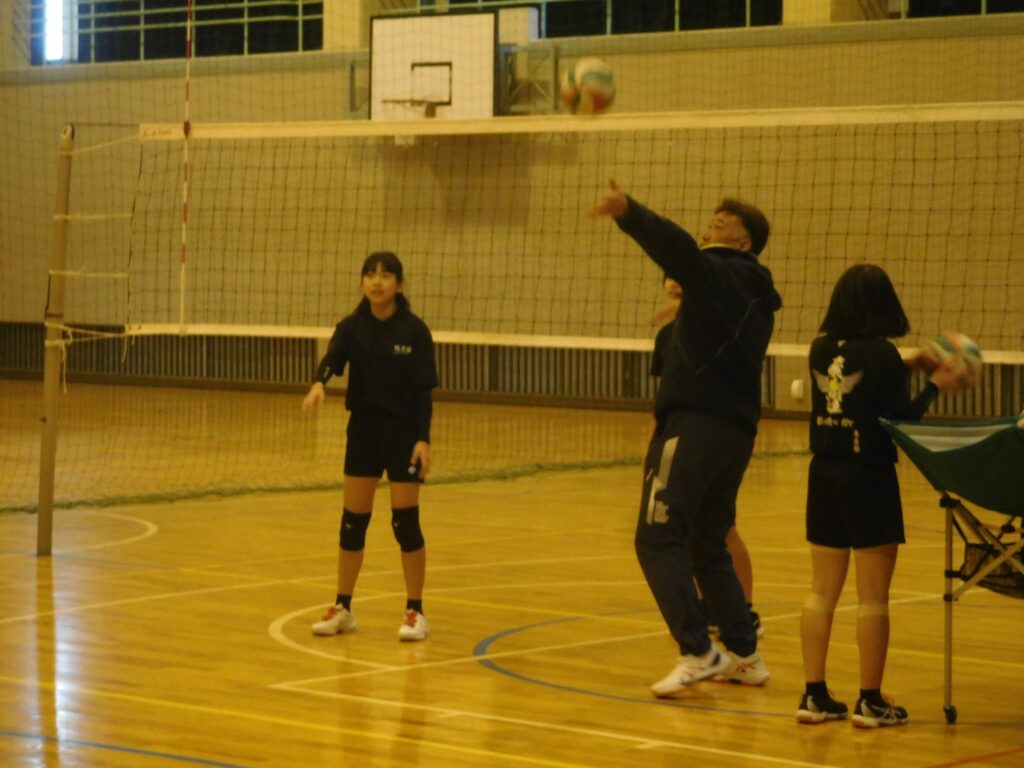 1月24日(土)は、町教育委員会主催の取組として町地域部活動企画委員の皆様にお越しいただき、男女バレーボール部の活動の参観や地域部活動のあり方、成果や課題についての意見交流が実施されました。バレーボール部の見学では、保護者参観も実施され、前田指導員による指導のもと、部員がボールに集中し、生き生きと活動している様子を参観していただきました。参観された皆さんからは、「みんなが一生懸命にボールを追いかけている姿や笑顔で声を掛け合っている姿がとても印象的で素晴らしかった」、「指導者が気づいたことをその場ですぐに指摘し、それがプレーの改善につながっていた。見習いたい」という感想をいただきました。参観や会議に参加された委員の皆さん、参観に来ていただいた保護者の皆さん、前田指導員さんどうもありがとうございました。