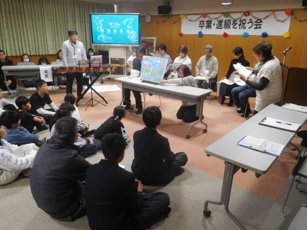 保護者の皆様におかれましては、お子様の卒業・進級をお祝い申し上げます。次年度も一人一人が新しいステージで活躍することを願っています。本会の開催にご支援、ご協力いただいた町教育委員会の皆様、民生委員・児童委員の皆様、参加いただいた保護者の皆様どうもありがとうございました。