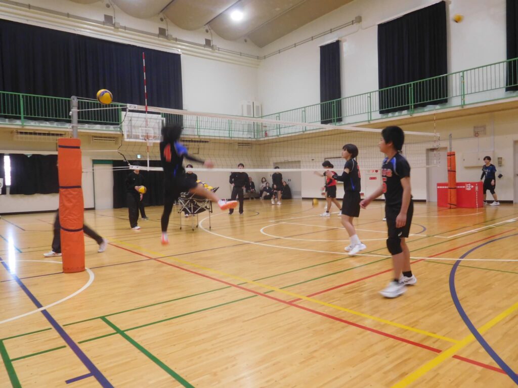 チームワークよく、接戦続きの中、みんなで声を掛け合いながら一生懸命にボールをつなぎ、チャンスでは思い切りのいい力強いアタックを決め、粘り強く勝ち抜きました。上手くいった時にはみんなで喜び合い、失敗した時も笑顔で励まし合ったり、同じ失敗を繰り返さないように作戦を考えたりしている姿が印象的でした。参加した1年生はもちろん、試合に出られない中、応援や選手のフォローに努めた2年生の支えも光った、チーム一丸の勝利でした。