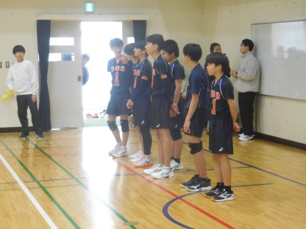 2月15日(日)に男山中学校で開催された令和7年度綴喜地方男子バレーボール1年生大会で、本校の男子バレーボール部がリーグ戦を全勝し(田辺中に2-0で勝利、男山二中に2-1で勝利、男山中に2-1で勝利)、見事優勝しました。