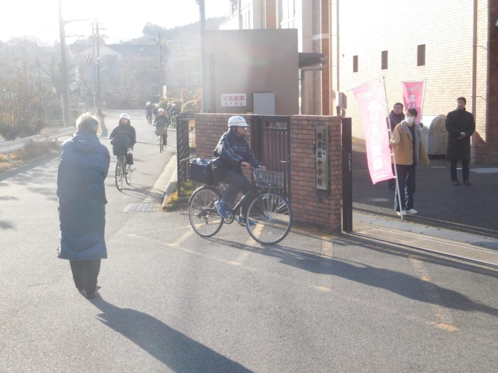 本日(2/19)の朝に本校東門前で、PTA各役員・町教育委員会・町社会教育委員さん合同のあいさつ運動を実施しました。ここ数日、朝の冷え込みが再び厳しい日が続いています。そうした中、元気なあいさつや笑顔にふれ、寒さも吹き飛び「今日も1日がんばるぞ」という清々しい気持ちになりました。これからも気持ちの良いあいさつの輪、笑顔の輪がさらに広がるようにこの取組を継続していきたいと思っています。次回のあいさつ運動は、3月5日(木)に予定しています。本日参加していただいた皆様、朝のお忙しい中、また、大変寒い中ありがとうございました。