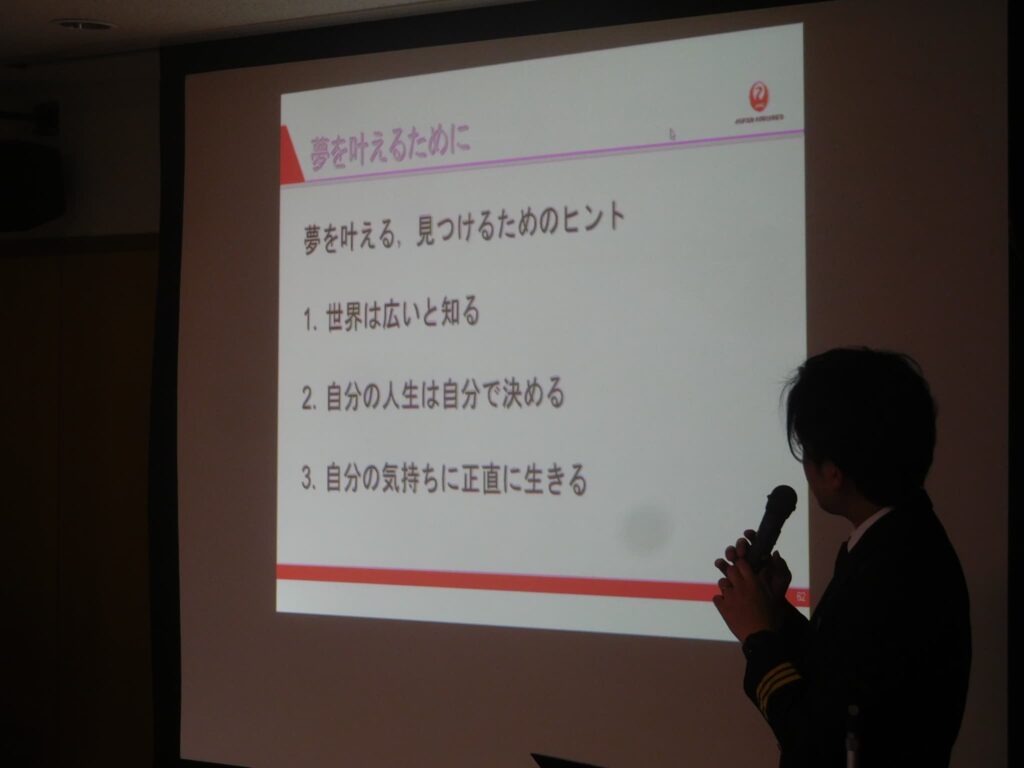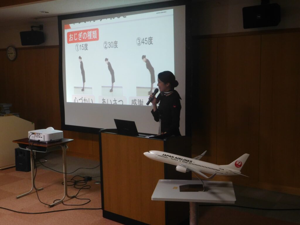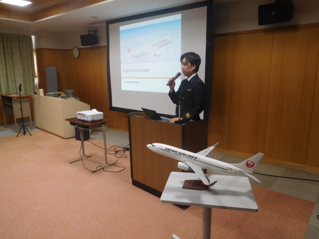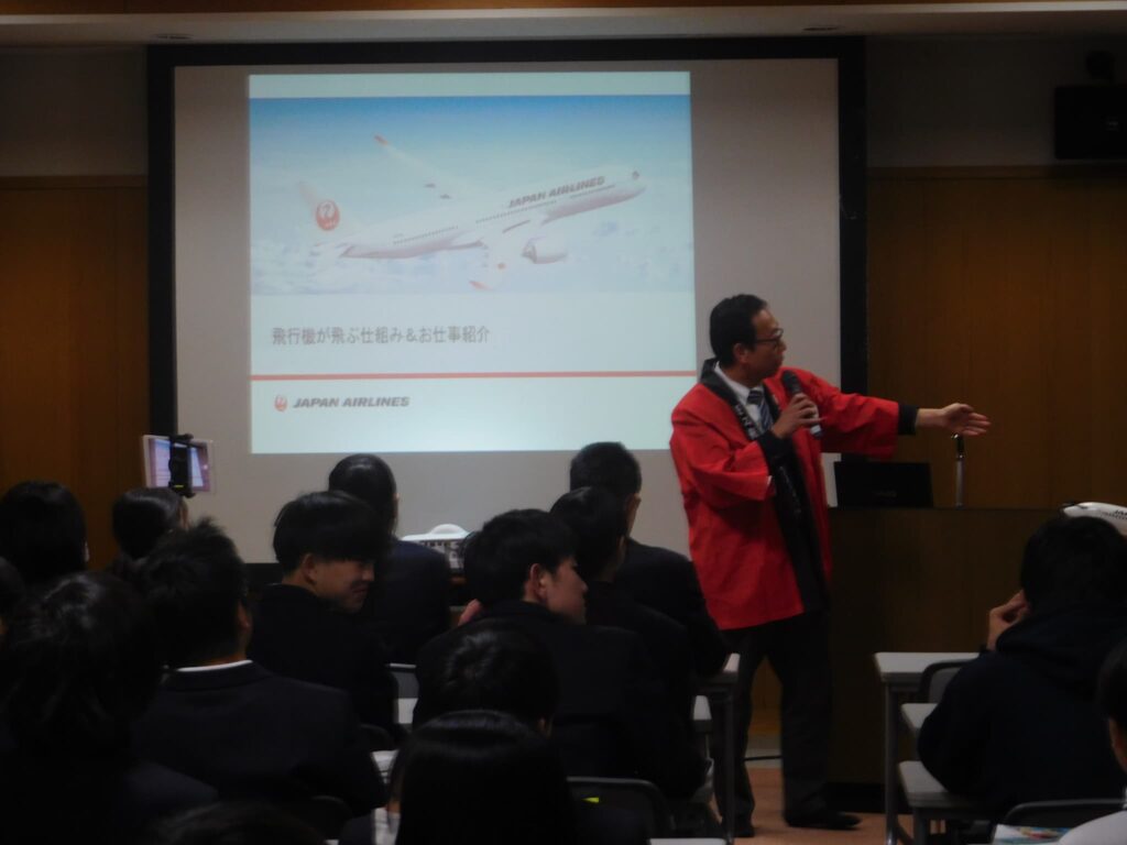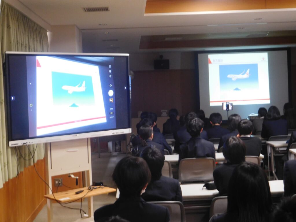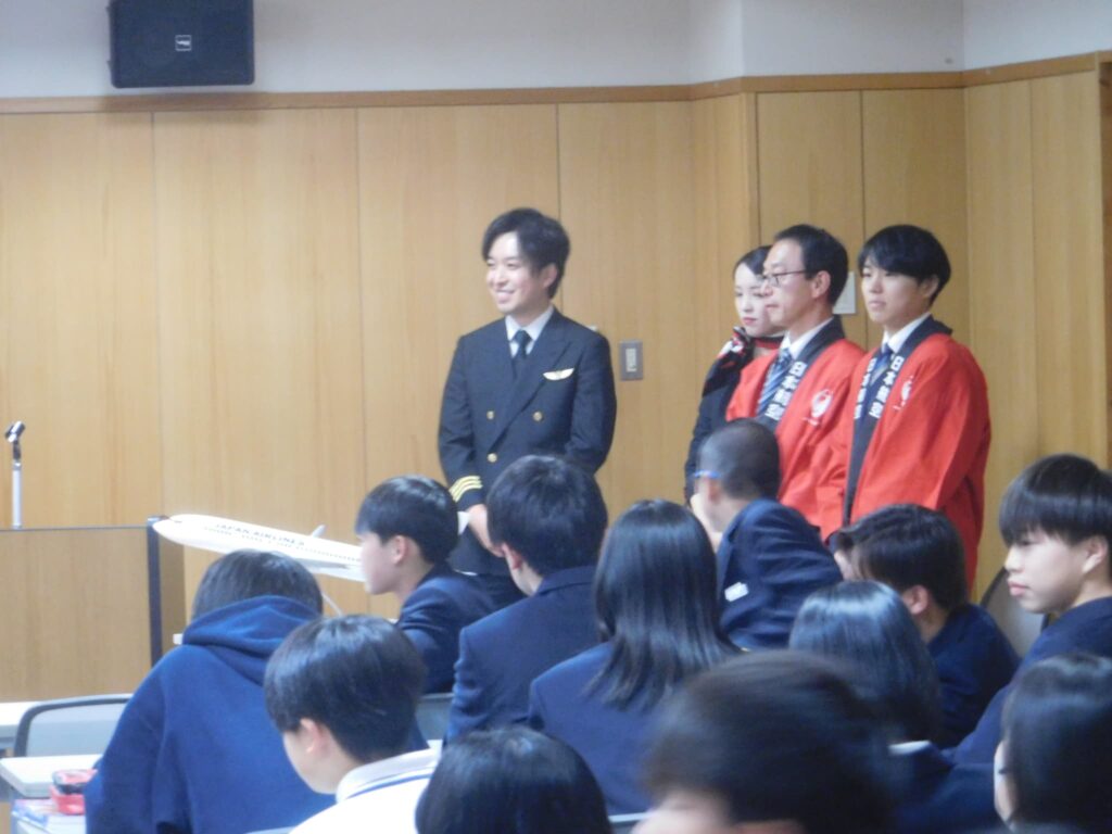 先週の金曜日(2/20)、2年生でJALの皆様による「空育」を実施しました。この取組は、現役の飛行機操縦士(パイロット)さん、客室乗務員(CA)さんを講師に迎え、生徒に航空業界の仕事や飛行機の仕組みについて学ぶ機会を提供することで、学びへの興味・関心を高めるとともに、将来の夢を持つことやキャリア形成につなげることがねらいで、昨年度の町内2小学校に続き、今年度中学校でも初めて実施した取組です。 生徒達は、パイロットさん、CAさんの話に真剣に耳を傾け、興味を持ったことに質問したり、休憩時間に聞きに行ったりして学びを深めていました。仕事のやりがい、苦労していることや喜び、普段努力していることなど、わかりやすく話していただき、一人一人が将来の夢や自分が今、大切にすべきことについて考えるよい機会となりました。本日お越しいただいたJALの皆様、生徒たちに貴重な機会を提供していただき、どうもありがとうございました。