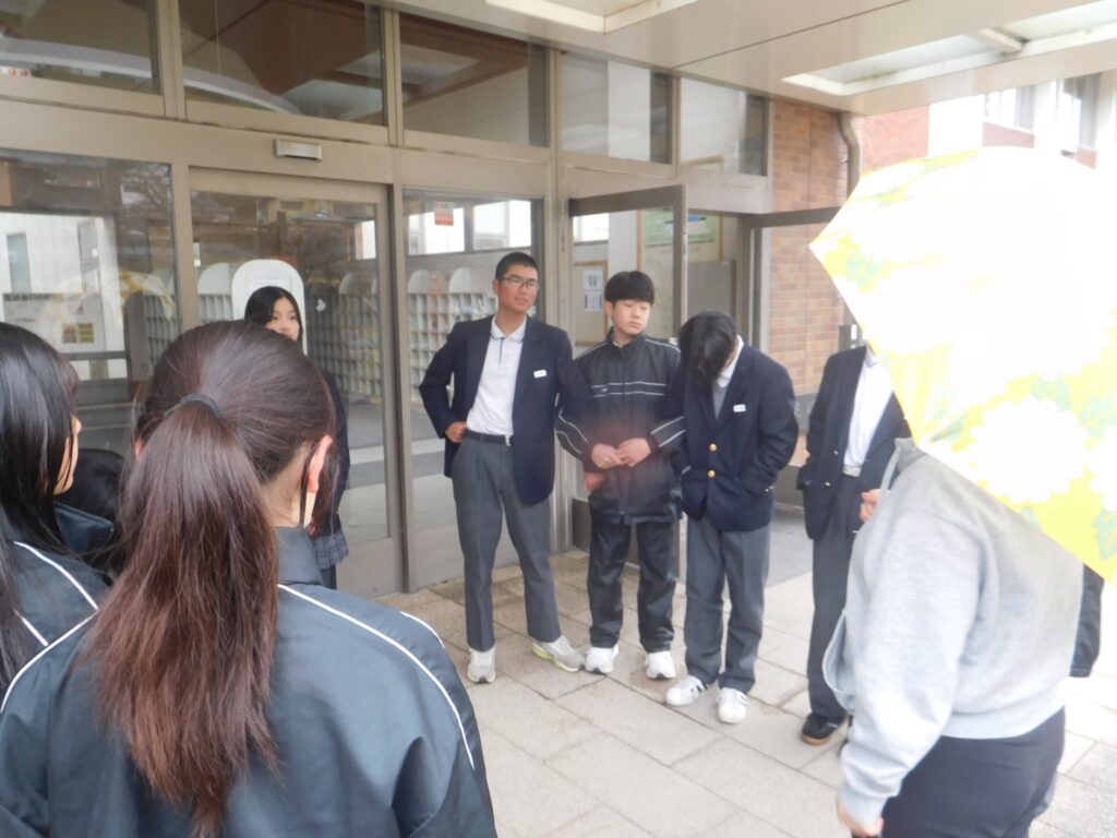 今後もこうした取組を続けることでみんなが気持ちいい朝を迎えることができればいいなと思いました。企画を考えてくれた生徒会本部役員の皆さん、参加した1・2年の評議員、委員会の委員長・副委員長の皆さんありがとうございました。