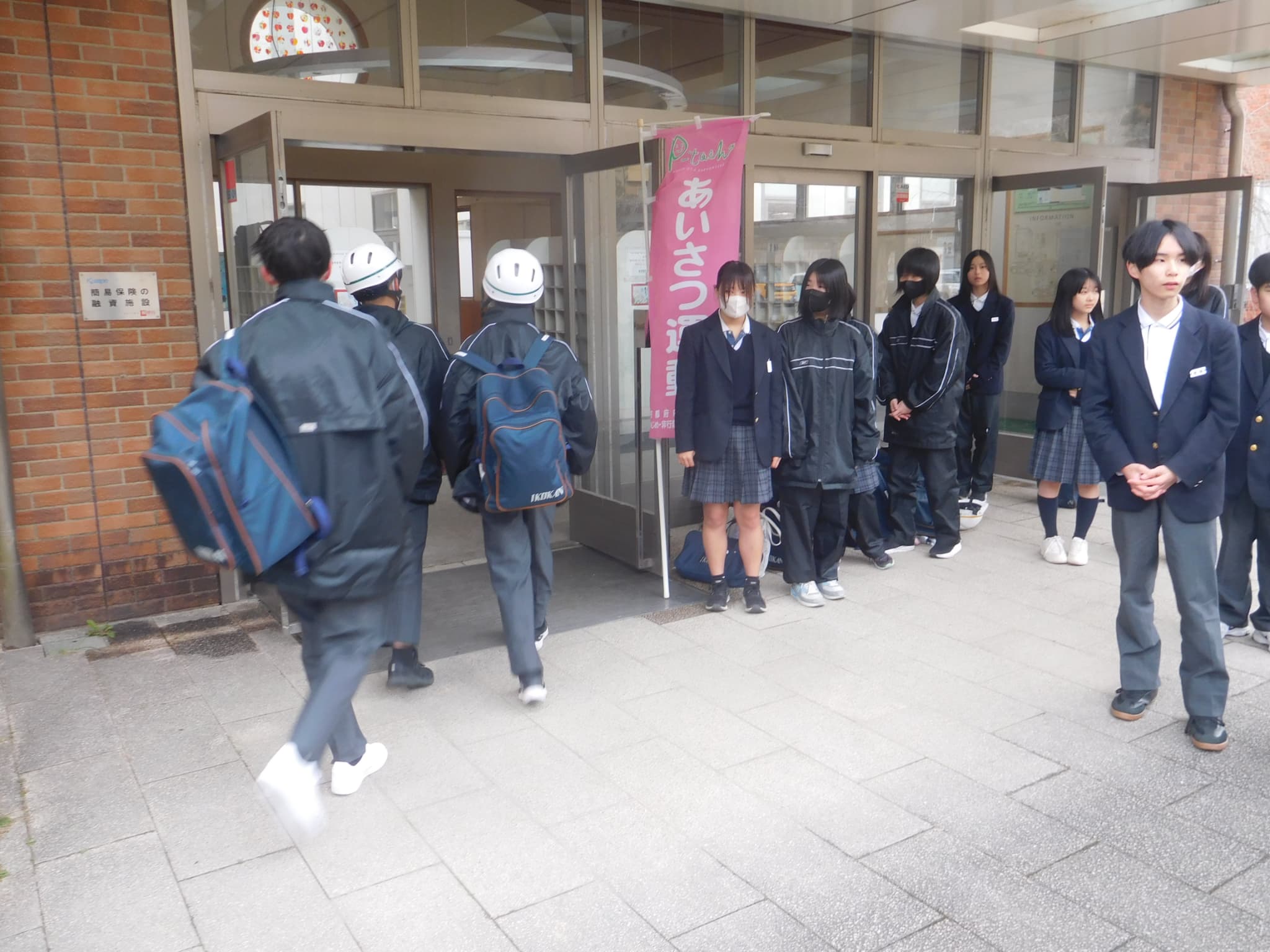 木曜日(3/5)には、東門前に社会教育委員の皆さんにもお越しいただき、東門、昇降口の2カ所であいさつの輪が広がりました。