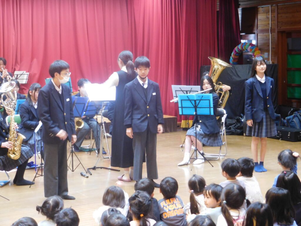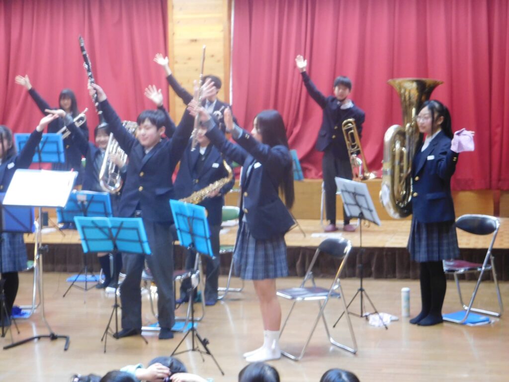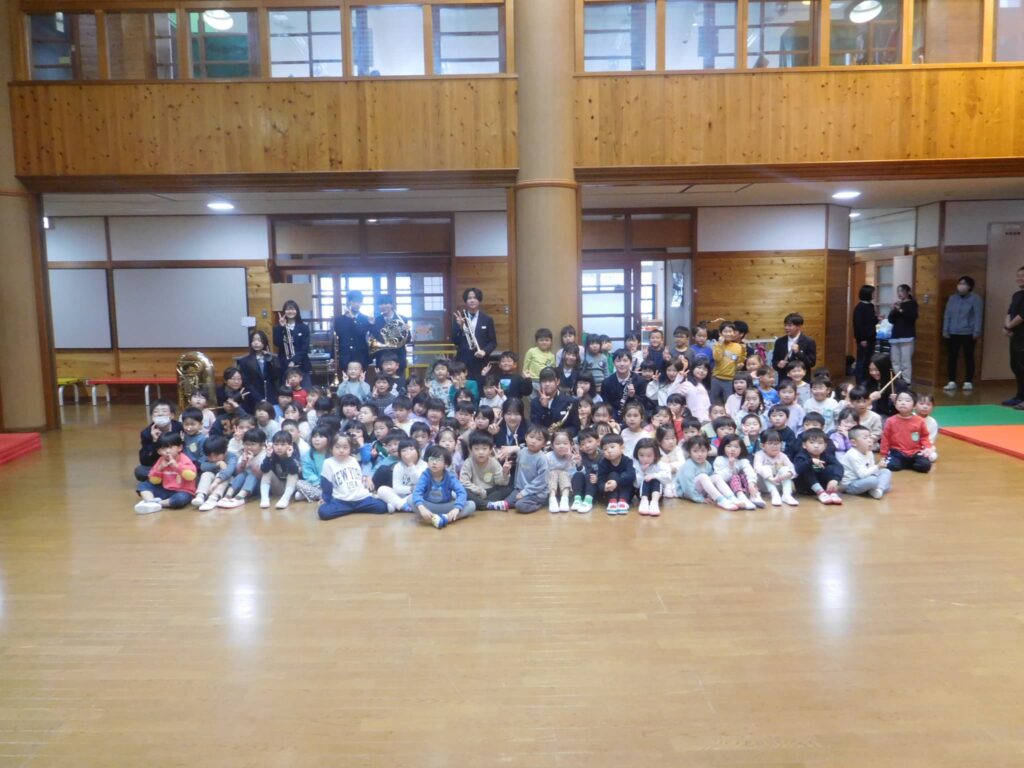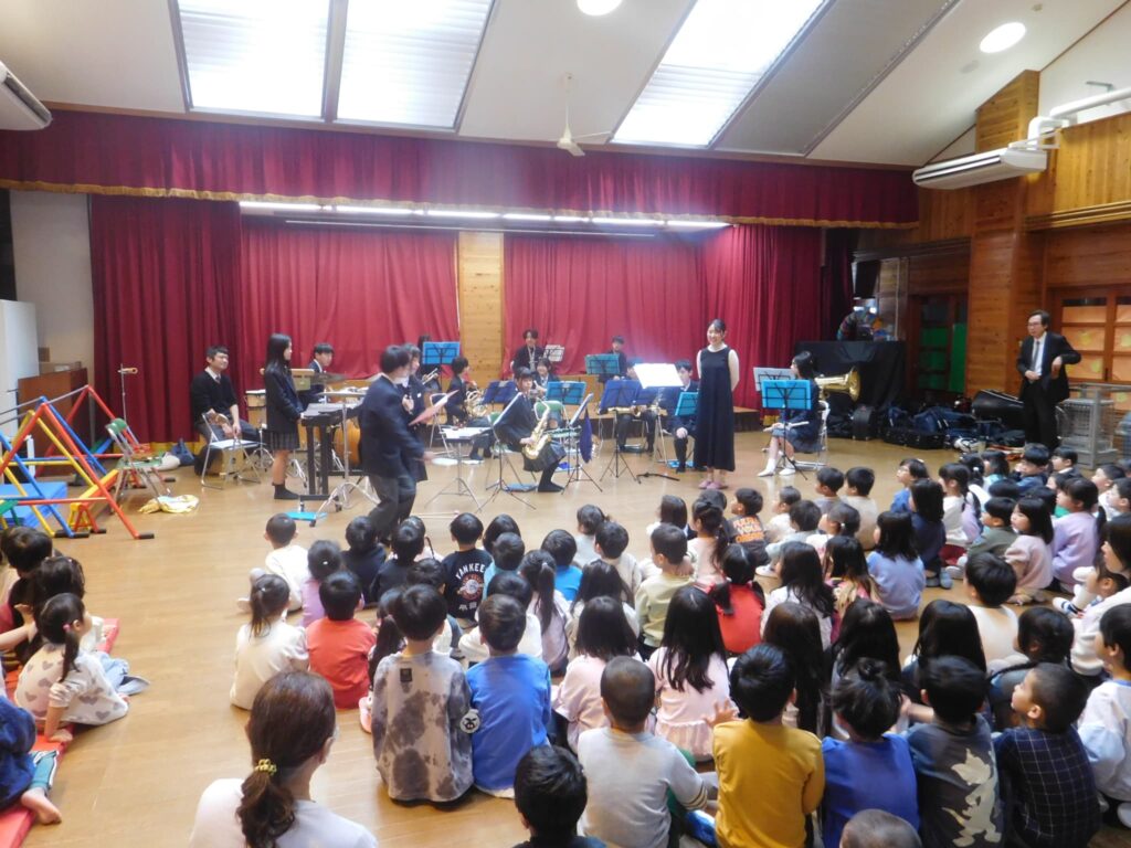 本日(3/26)、宇治田原町立保育所「あゆみのその」で昨年に続き吹奏楽部が春のコンサートを開催しました。コロナ禍のため4年間中止が続いていたコンサートを昨年再開したところ、自分たちの演奏に園児がとても喜んでくれたことがとても嬉しく、今年度も部員一同とても楽しみにしていたコンサートでした。本日も150人を超える大勢の園児さんや保育士さんの前で、「アンパンマンマーチ」、「ドラえもんのテーマ」、「ミッキーマウスマーチ」など園児さんにもなじみのある曲を軽快なMCのもと、時には振りを付けたり、行進したりして楽しい時間を過ごすことができました。みんな大喜びで大きな声援と拍手が沸き上がり、一緒に踊ったり歌ったりする園児さんもいて、笑顔の輪が広がりました。予定していた曲目が終わった後も「アンコール」の声が響き、最後は「学園天国」を演奏し、会場が一体となった手拍子の中で盛り上がり、終了となりました。会場にいた皆さん、子どもも大人も笑顔で幸せな気持ちになる温かい演奏会となりました。吹奏楽部の皆さん、お声かけくださった「あゆみのその」の皆様どうもありがとうございました。