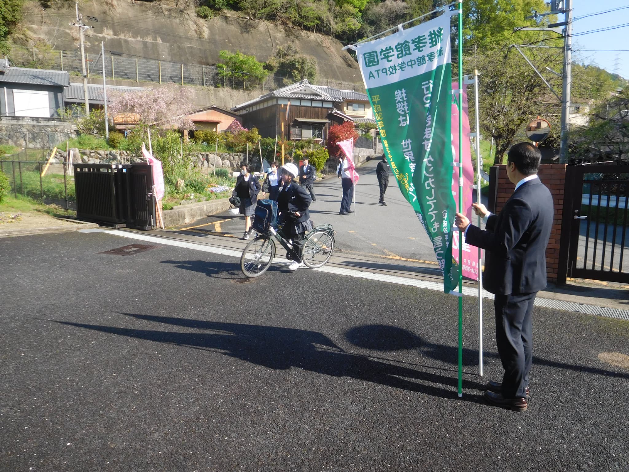 本日の朝に本校東門で、町教育委員会・社会教育委員の皆様と教職員で今年度最初のあいさつ運動を実施しました。新入生を迎え約1週間が経ちました。気持ちの良いあいさつで一日をスタートすることは、お互いのコミュニケーションを図り、「今日もがんばるぞ」という気持ちになるのにとても大切なことです。これからも気持ちの良いあいさつの輪がひろがるように引き続きこの取組を継続していきたいと思っています。現在、学校では今後、今年度の地域委員選出選挙を実施しますが、地域委員さんが決定した後には、PTA本部役員、地域委員の皆様にも加わっていただき、一緒にあいさつ運動を実施していく予定です。本日参加していただいた皆様、朝のお忙しい中、ありがとうございました。