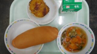 今日の給食は、10月31日の「ハロウィン」にちなんだ献立でした。ハロウィンは、ヨーロッパやアメリカから世界に広まった行事で、みんなで仮装をするのは、悪霊を追い払い、災いを遠ざけ豊作を願うためだそうです。かぼちゃをくり抜いた「ジャック...