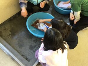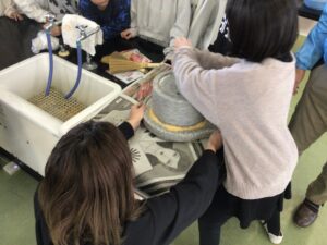 昔のくらし・遊びに体験 学校の様子 2026.01.16 今日は、年に1度の「昔のくらし・遊び体験」の日でした。3年生は、昔のくらしの体験で、洗濯板を使った洗濯、棒ばかりでの計量、石臼の使用、七輪の使用。1年生は、昔の遊びとして、お手玉、おはじき、羽子板、竹とんぼ、けん玉などを体験しました。校区の社会福祉協議会の方々をはじめ、多くの地域の皆様にご参加いただきましてありがとうございました。 Post Views: 2
