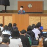 あいさつ終了後の振り返りでは、中学校から一言感想を話してもらい、小学校からも一緒にできてうれしかった等の感想を伝えました。