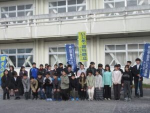 最後に、中学校の生徒会からあいさつがあり、参加した全員で写真撮影をしました。