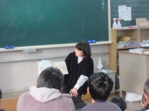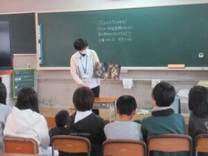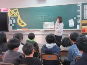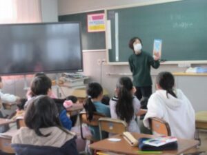 学校の様子今日の朝の時間に、市立図書館の方による読み聞かせを行いました。今回は高学年の学級に入っていただきました。図書館の方に読んでいただくのでちょっと緊張しつつも集中して聞くことができました。
