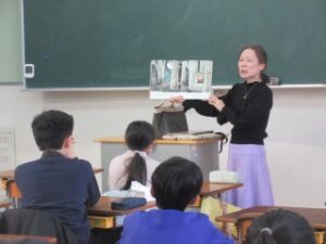 今日の朝の時間に、市立図書館の方による読み聞かせを行いました。今回は高学年の学級に入っていただきました。図書館の方に読んでいただくのでちょっと緊張しつつも集中して聞くことができました。