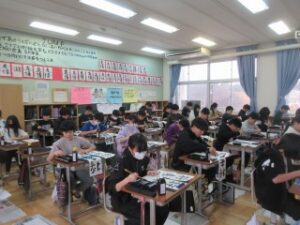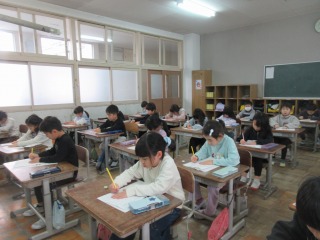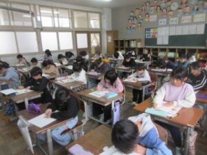 放送で「春の海」を流し、いつもとは違う雰囲気の中、心を落ち着けて「よい姿勢でゆっくり書くこと」を意識して書き始めました。