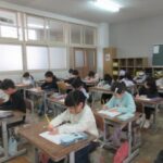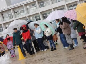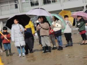 今日は、字の上達を願うとともに、各学年で考えた目標を発表し、目標が達成できるようにという願いを天まで届けました。
